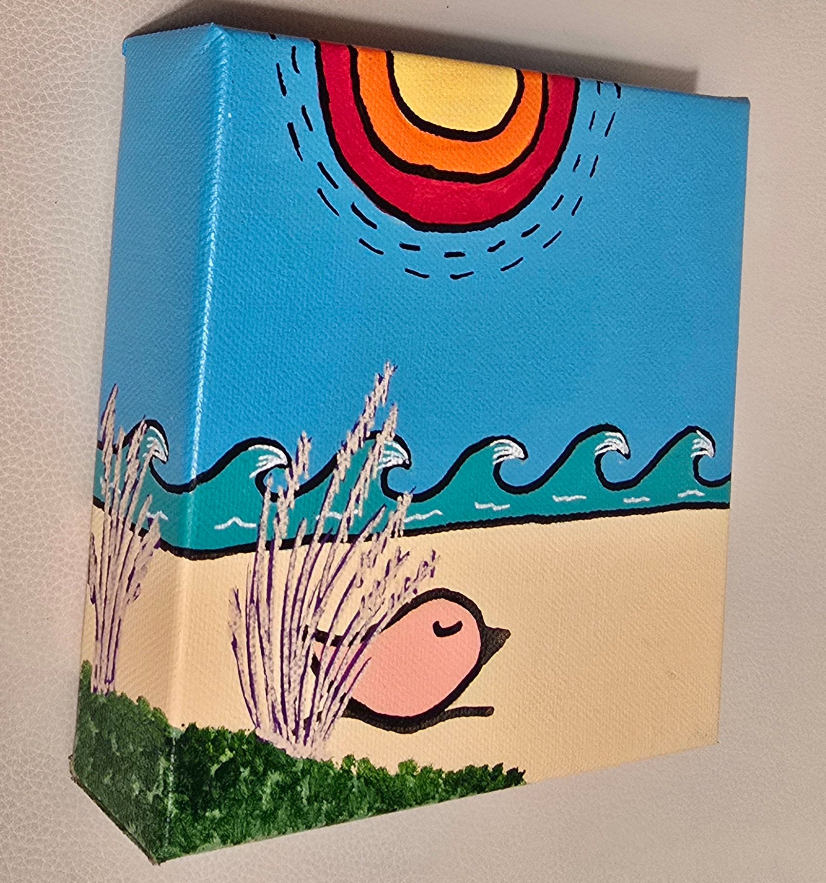 Sleeping in Dune Grass is a 6x6x1.5 acrylic on canvas painting.