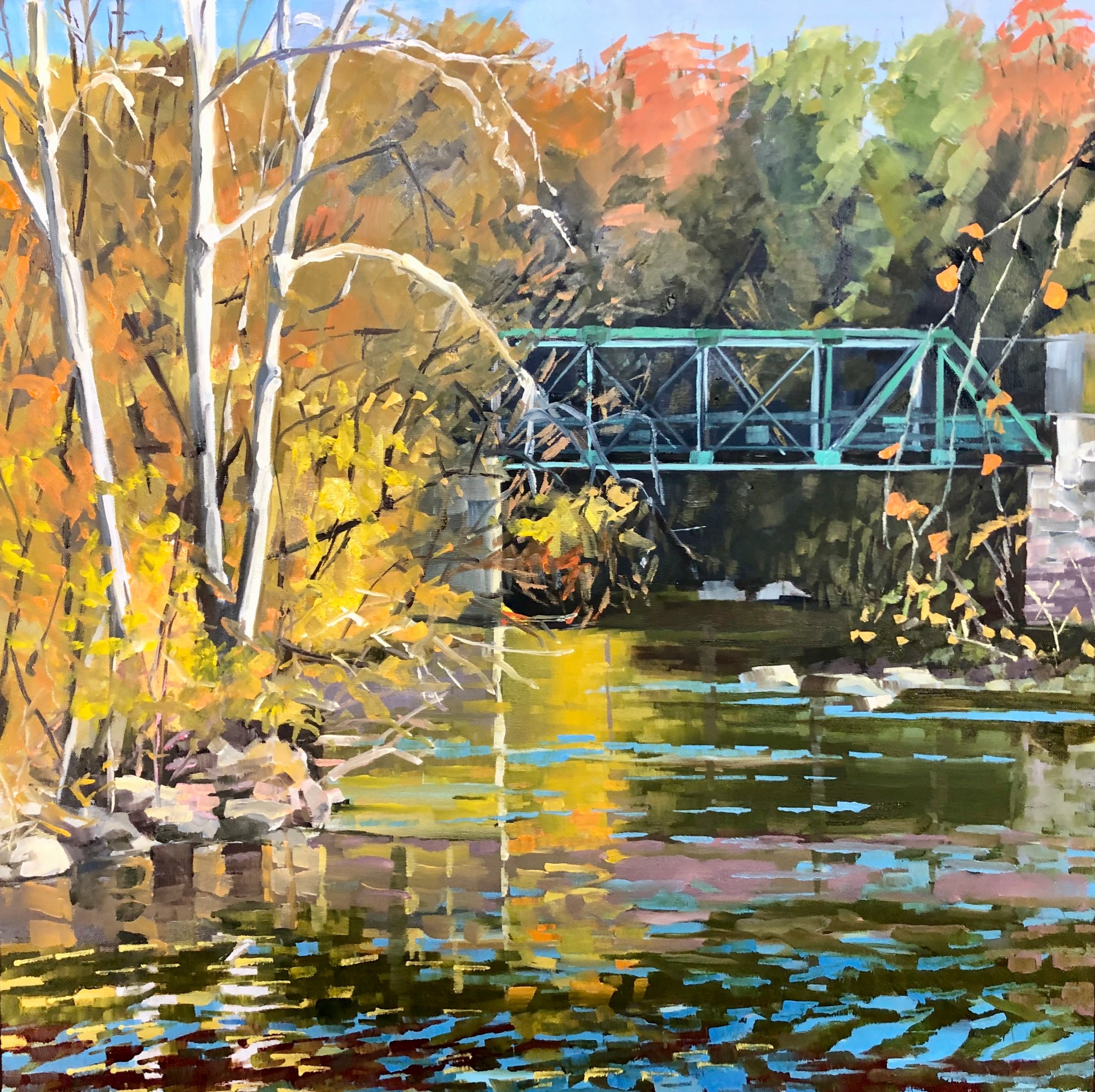 studio piece done from oil sketch and photo reference. Brandywine river near the Hagley Museum