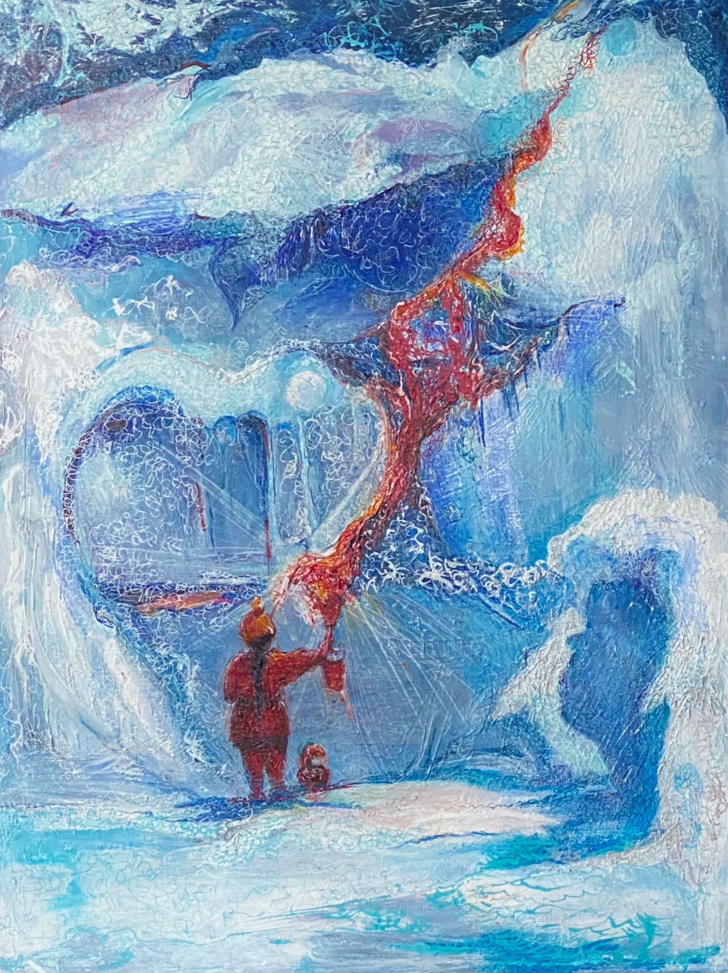 MessageIn this piece, one authentic heart meets a frozen world. "Making a way" speaks to the power of feminine presence. I created this work as an offering and a reminder that aligned creative action can dissolve even the deepest separation.