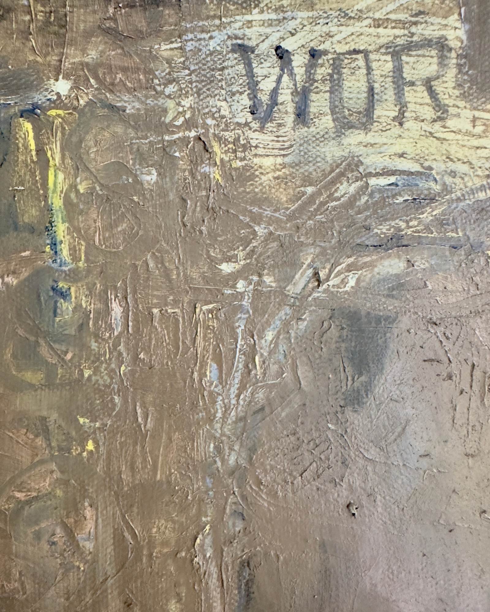 Elena's current body of work evokes the essence of complex human emotion, experience and condition through the raw excavation of paint.
