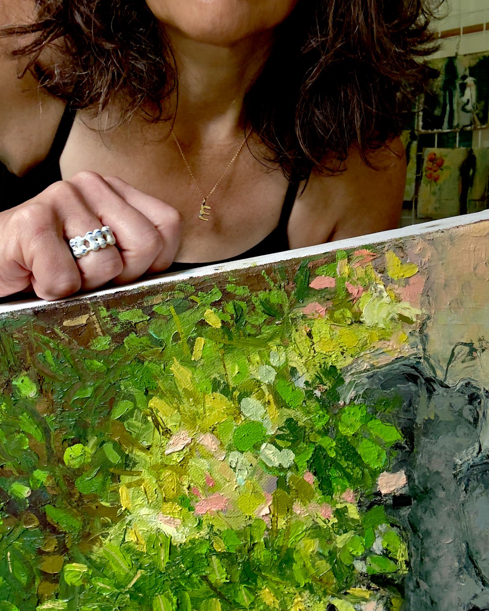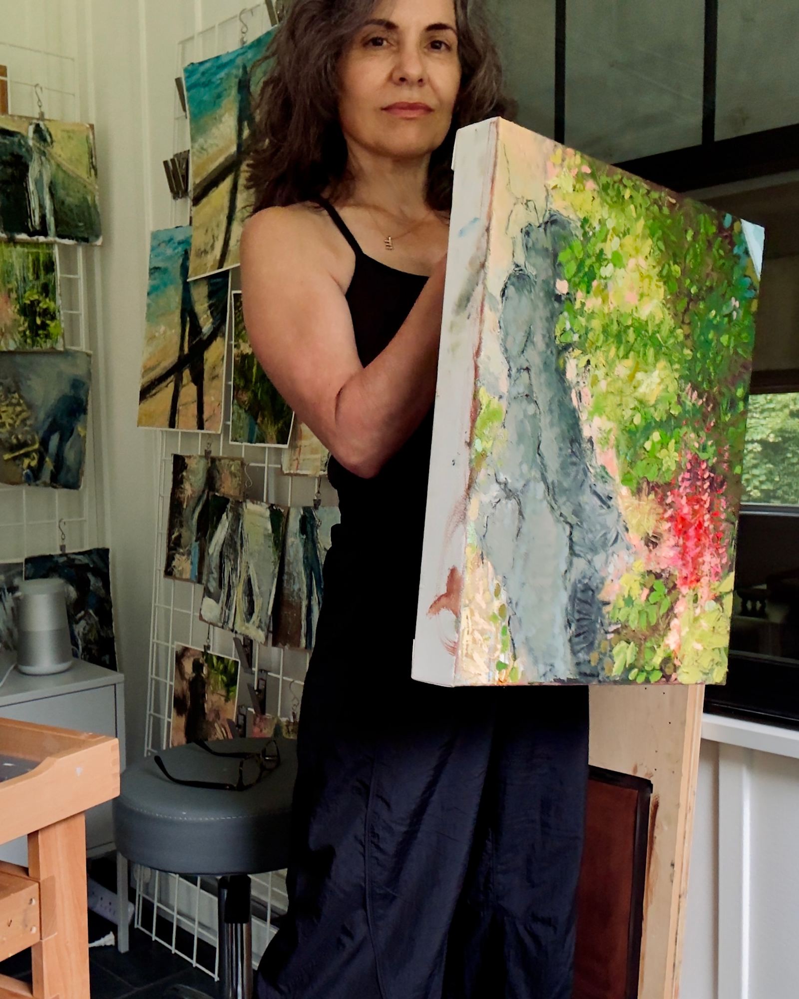 Elena's current body of work evokes the essence of complex human emotion, experience and condition through the raw excavation of paint.