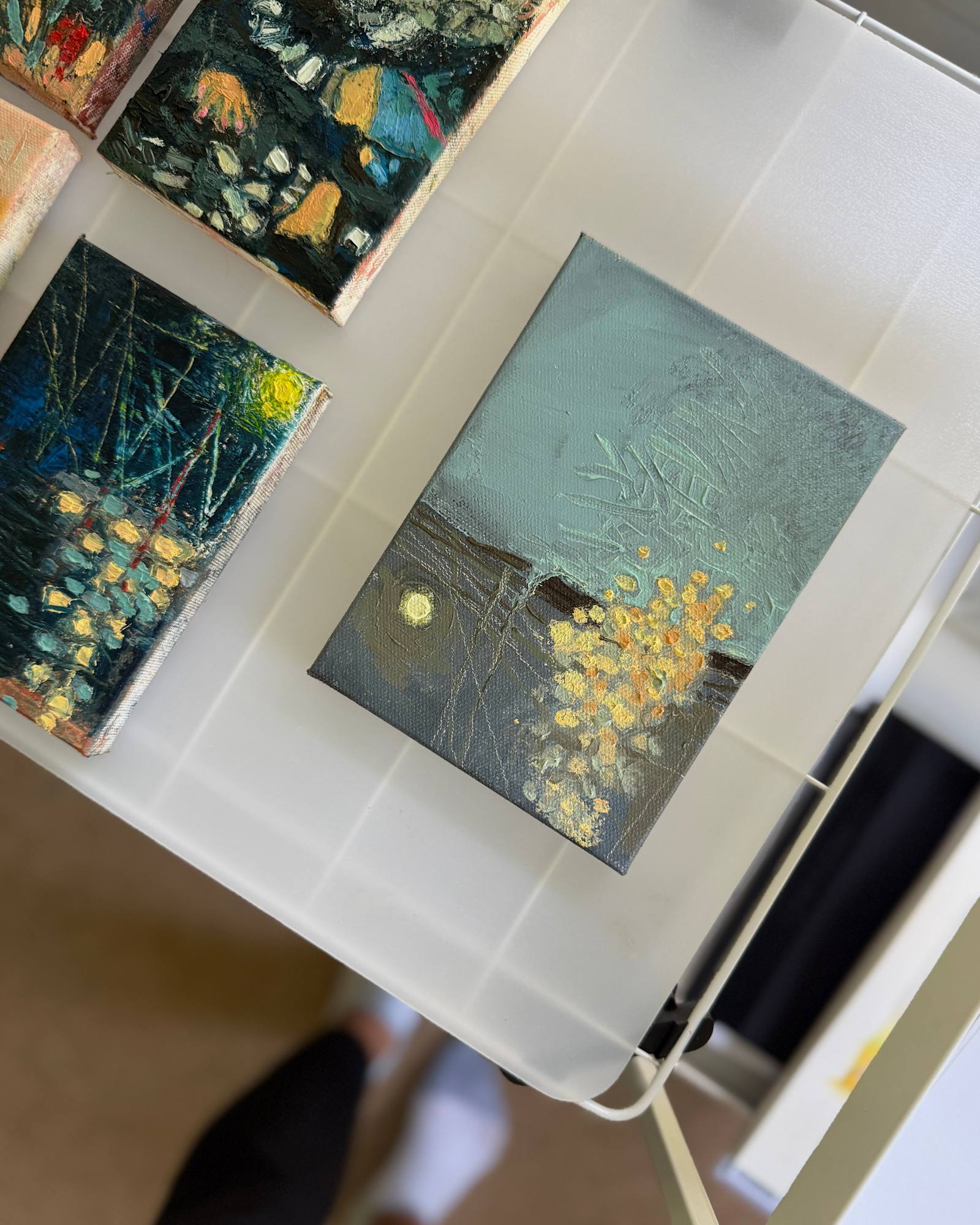 Elena's current body of work evokes the essence of complex human emotion, experience and condition through the raw excavation of paint.