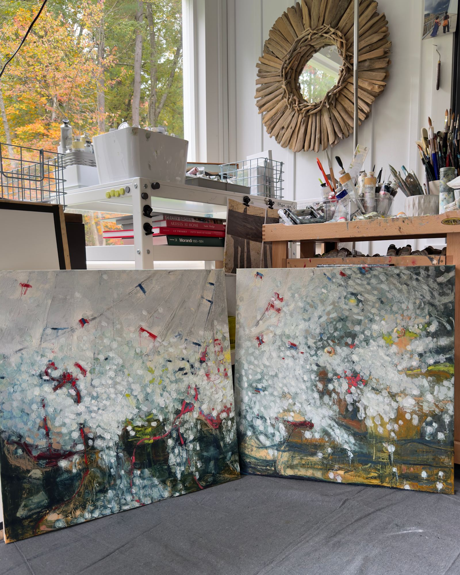 The Fates 2 (Moirai) by Elena Behrakis  Image: Expressive painting of three women consumed by white waves and water.
