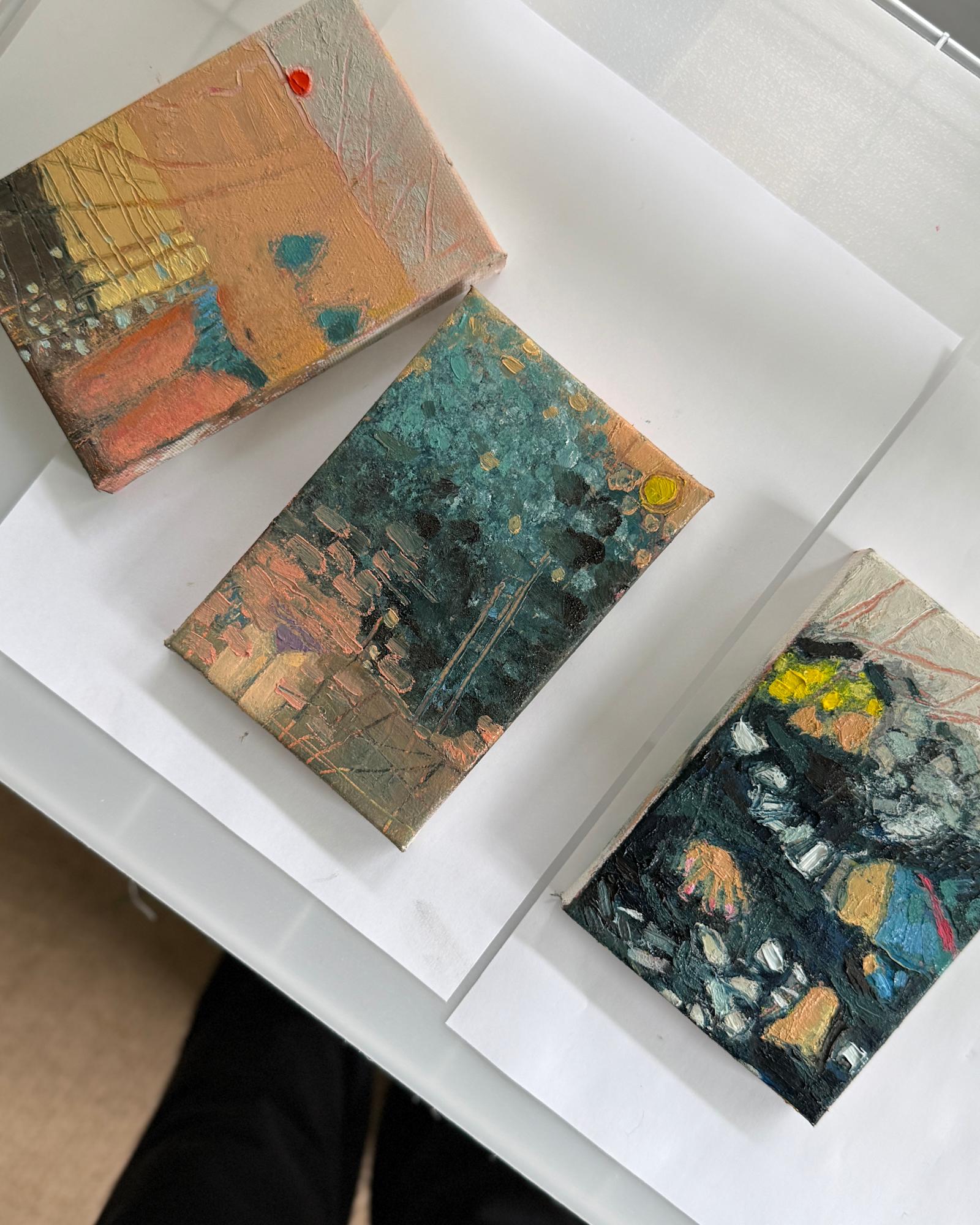 Series of six paintings. Each 4 x 6" Available framed.