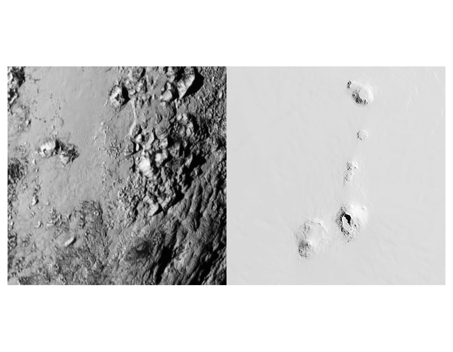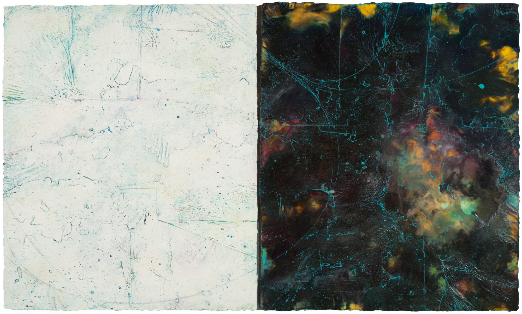 The photos of NASA’s Pluto Flyby New Horizons Mission immediately captivated me, motivating my “Pluto Atlas” series of diptychs. The above image is based on the the actual photo of Pluto, showing that it is composed of glacier and rock. This is the third of three paintings in a series.