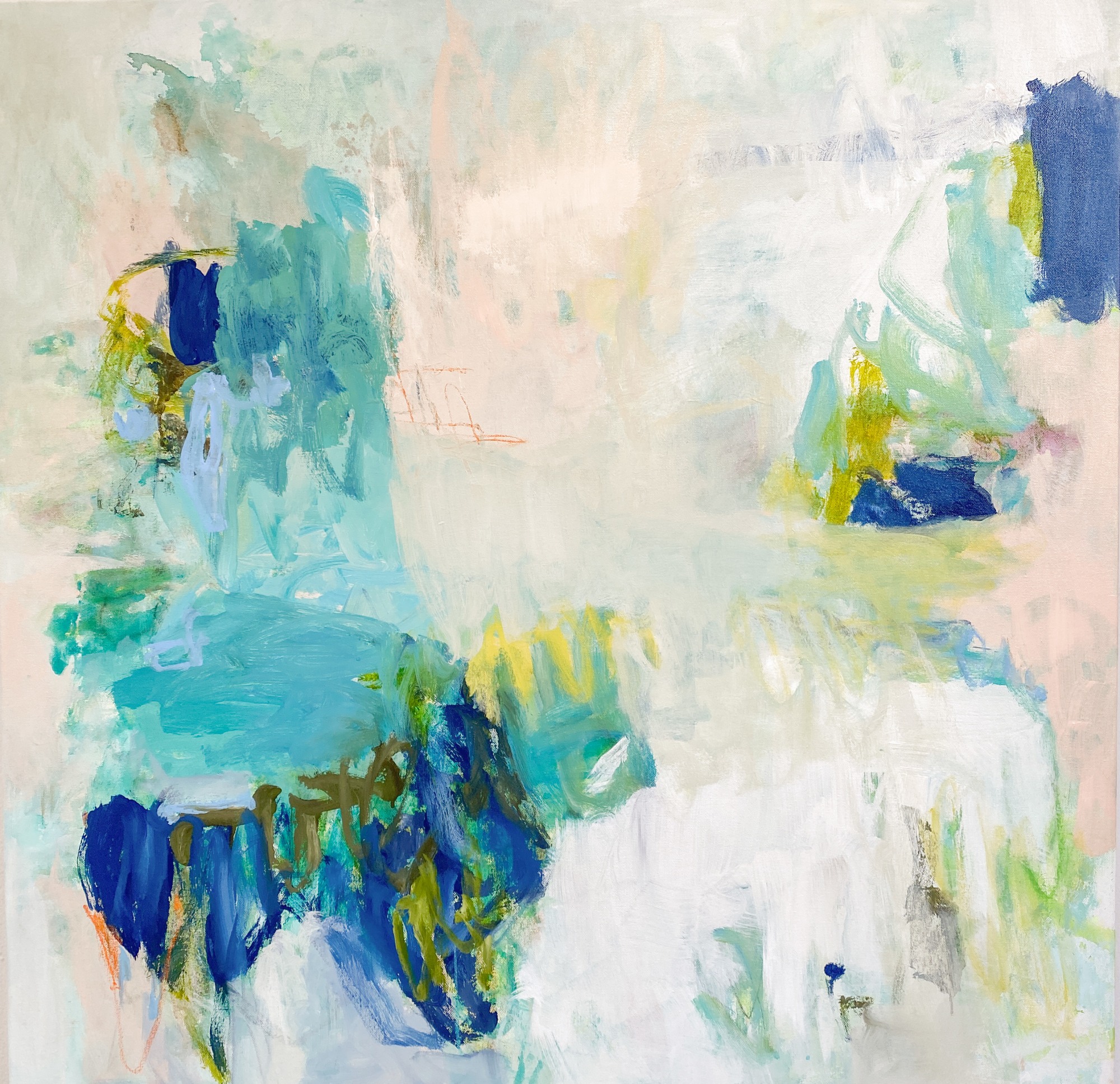 Beach Day II is an original painting by Elizabeth Bernheisel. This painting is finished with a satin varnish to protect from dirt and UV light. It comes wired on the back and ready to hang. The edges of the canvas are painted in a neutral color that compliments the painting. Signed by the artist on front and back, it comes with a certificate of authenticity.