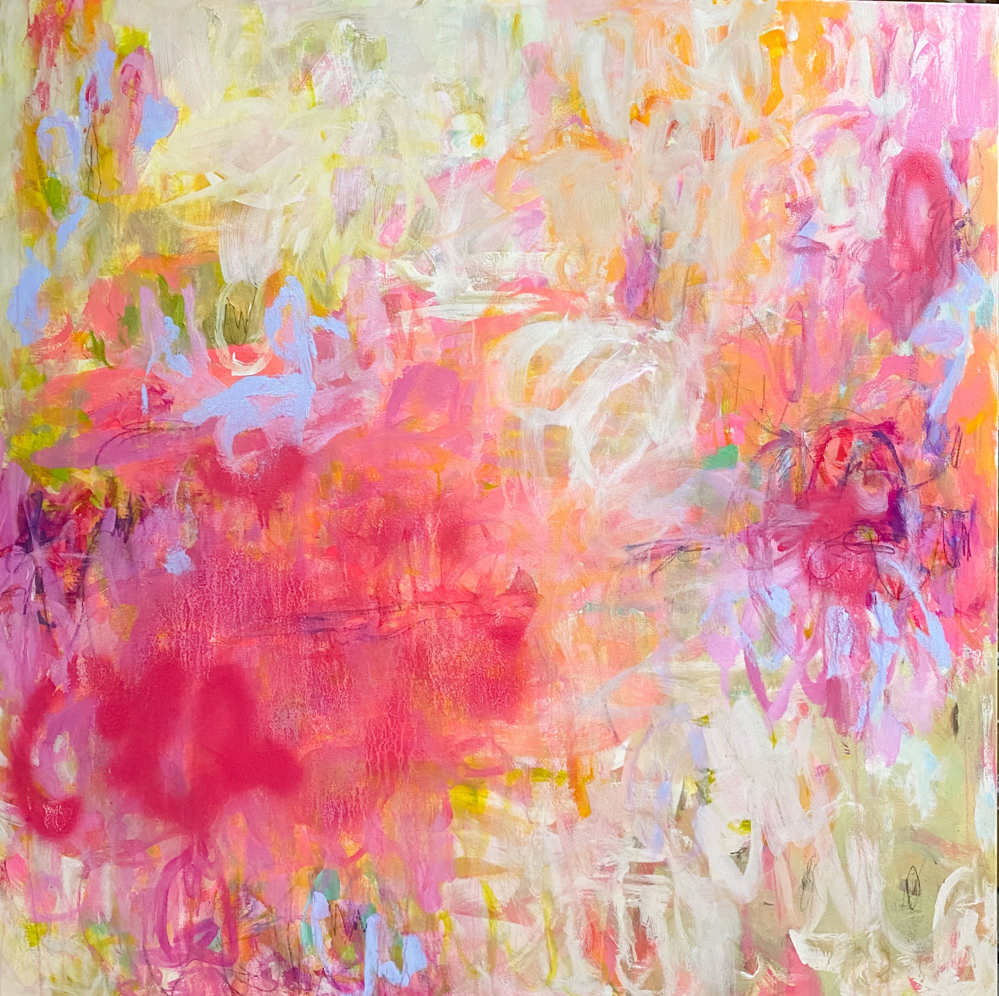 Summer Wine is an original painting by Elizabeth Bernheisel. This painting is finished with a satin varnish to protect from dirt and UV light. It comes wired on the back and ready to hang. The edges of the canvas are painted in a neutral color that compliments the painting. Signed by the artist on front and back, it comes with a certificate of authenticity.