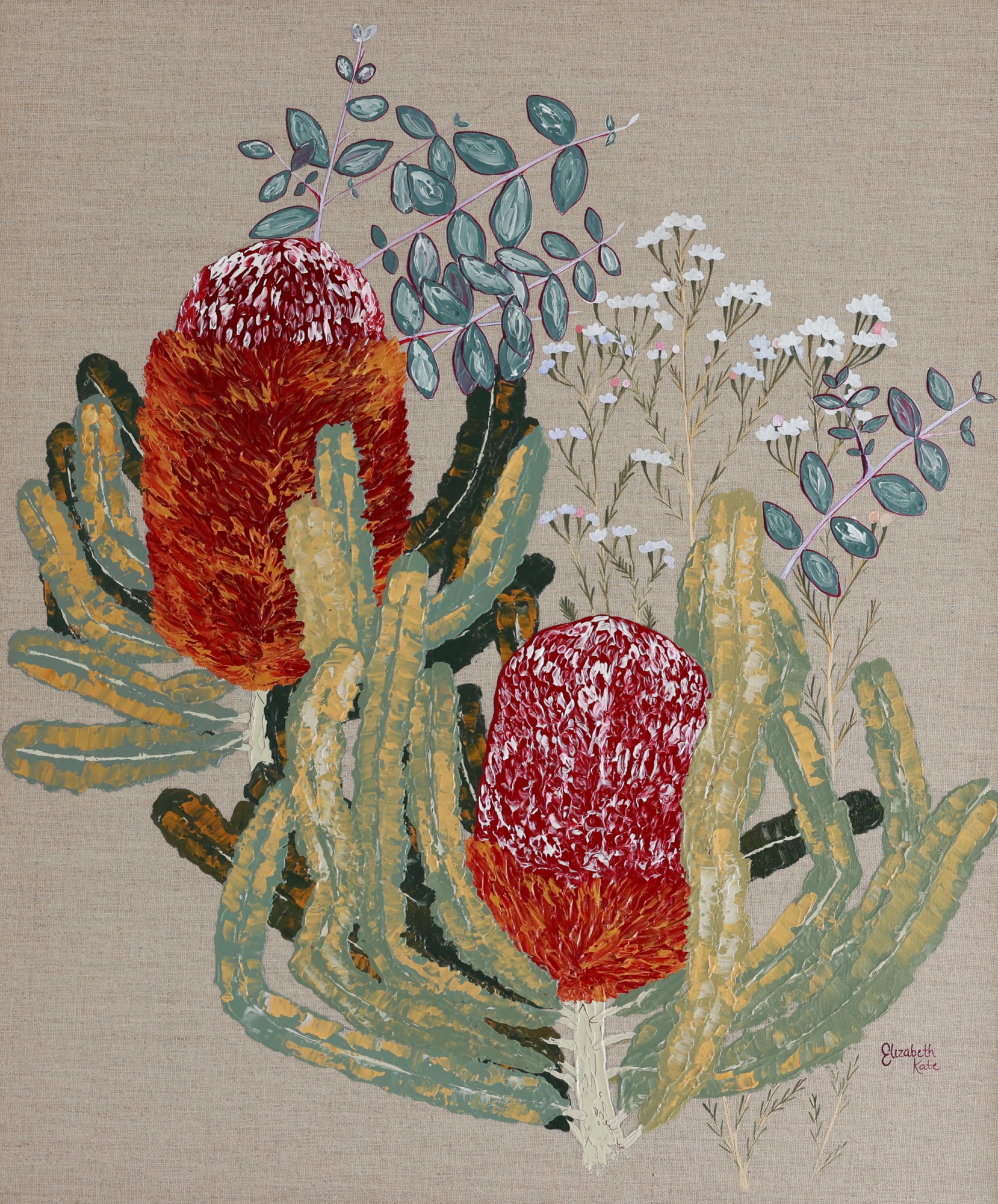 As I move through the beautiful Australian bush, my eyes delight in the sight of the blossoms which my nose had first taken pleasure in. The bright, bold colours of the banksias in bloom captivate my attention as they stand proudly at the top of the forest. The soft blue-green of the eucalypt leaves, hemmed elegantly in pink, spill out over the path before me, so many precious gems glinting in the sunlight. And the tiny wax flower, hanging as so many perfect little pearls along the branches of their simple bush, decorating the forest in their thousands.