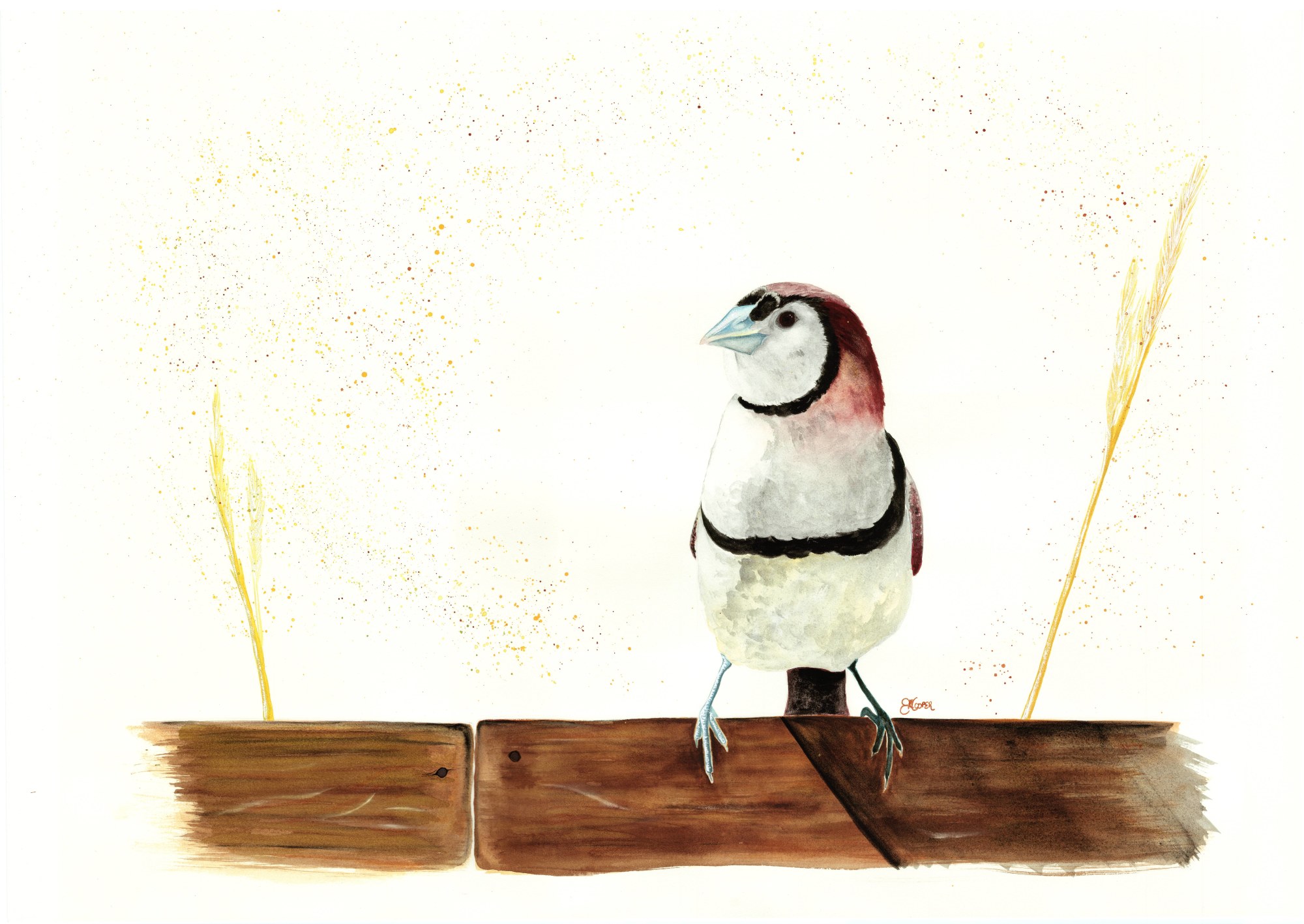 Turning off the ignition of my old ute, covered in the red dust that announces it's coming down the well-worn dirt track, I sit and watch their petite frames jump playfully through the stalks of wheat and grass, up and over the old wooden fence that does nothing to contain these wild creatures. How peaceful is their sound! The 'peeping' of their call to one another a gentle melody in the still and quiet of the mid-morning hush at the farm road. Their delicate faces, pure white against the red earth surrounding them, is framed in an elegant black ring - highlighting the beauty and perfection within as eyeliner is used to emphasise the beauty of the gaze within. The tiny, jet-black wings, moving at a speed undetectable to the eye when in flight, is intricately decorated with hundreds of perfect, tiny white spots, like glittering sequins adorning the most beautiful wedding dress. A subtle splash of indian red across the back adds a delightful burst of colour to this stunning little creature, completing the tiny masterpieces playing together as I watch through the ute's battered old windshield.