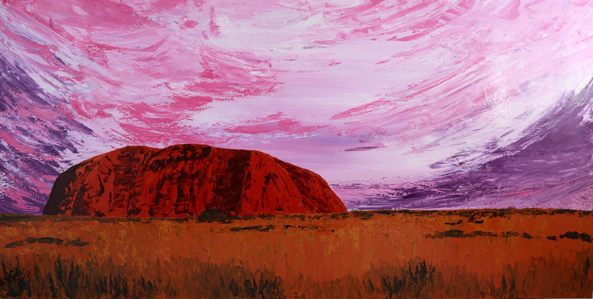 I can imagine the utter stillness in the middle of the Australian desert, with only my Creator beside me and the Great Rock before me. The summer heat causes massive sandstone to shimmer as if alive. Suddenly, the temperature begins to drop, and the colours begin to change. As the sun descends, the vibrant red of the rock explodes with colour. Pinks and purples are thrown across the sky, and the last of the golden light dances across Ayer's rocky surface. Spilling over the grass below, the last rays play in the tall stalks, a golden shimmering ocean surrounding the beautiful formation.