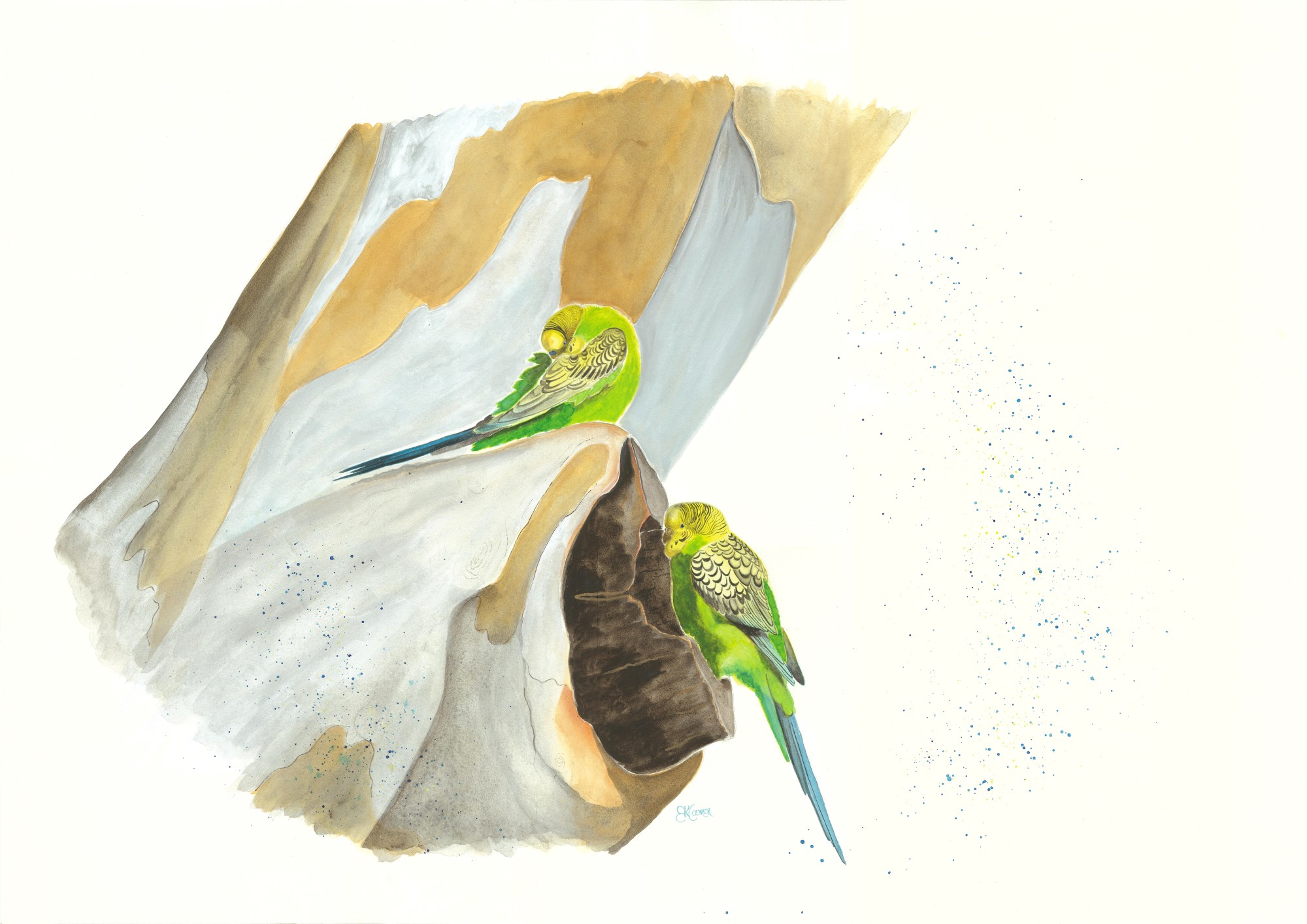 But the real delight comes in seeing these tiny parrots in the Australian bush. Tiny bursts of bright yellow and iridescent green against the bright blue sky, hearing their joyful fills the heart to rejoice along with them! These happy little parrots are such a beautiful example of the joy and peace of knowing they will be provided for by their Heavenly Father. Choosing to depict a bonded couple, enjoying their little home in the beautiful paperbark tree made just for them by their Creator, this piece brings a sense of contented joy that all their needs are met. These little birds are a perfect reminder to us to be content in the beauty of the world around us, in the simple joyful assurance our Father in Heaven will provide for our every need.