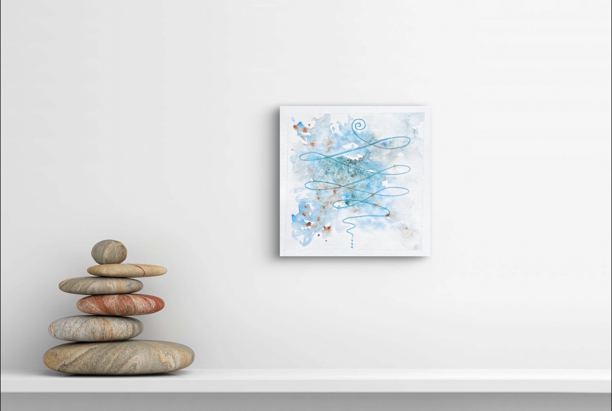 Created on the beach in Ocean City, MD in the summer of 2024. I used ocean water, sand, and Winsor and Newton watercolors to create the depth and texture of the background. The color theory implemented is based on turquoise stone and its symbolic properties. The Unalome in the foreground is both a Buddhist and Hindu symbol representing a path to freedom, or life path and consisting of 3 parts: the spiral (direction from inward to outward), the swirl (mental awareness leading to introversion), and the straight line (clarity and focus).