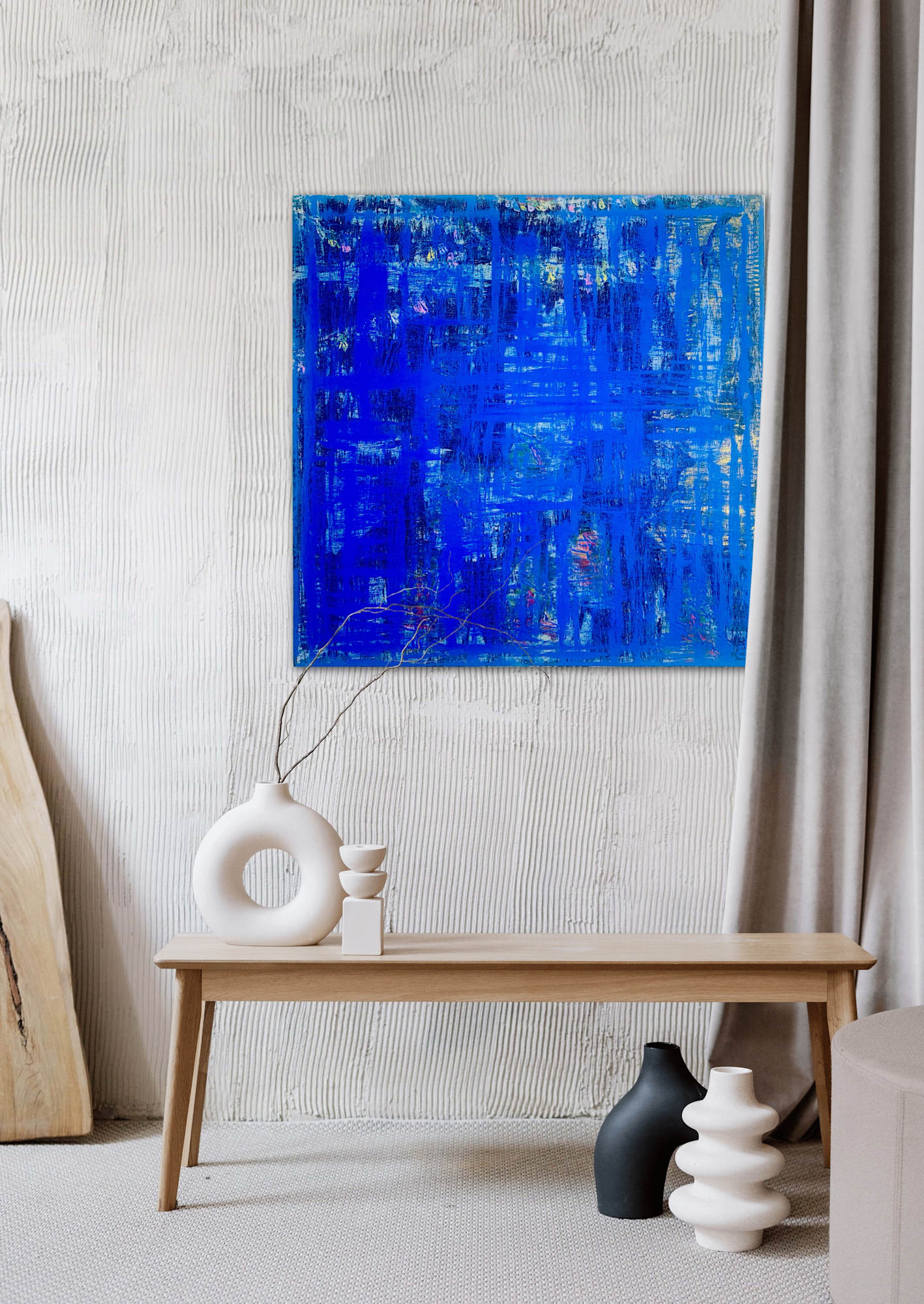 The artwork is kept in a calming blue, the bright colour with the surface structure forms an unmissable eye-catcher. It suits any interior style and can be presented together with other artworks.