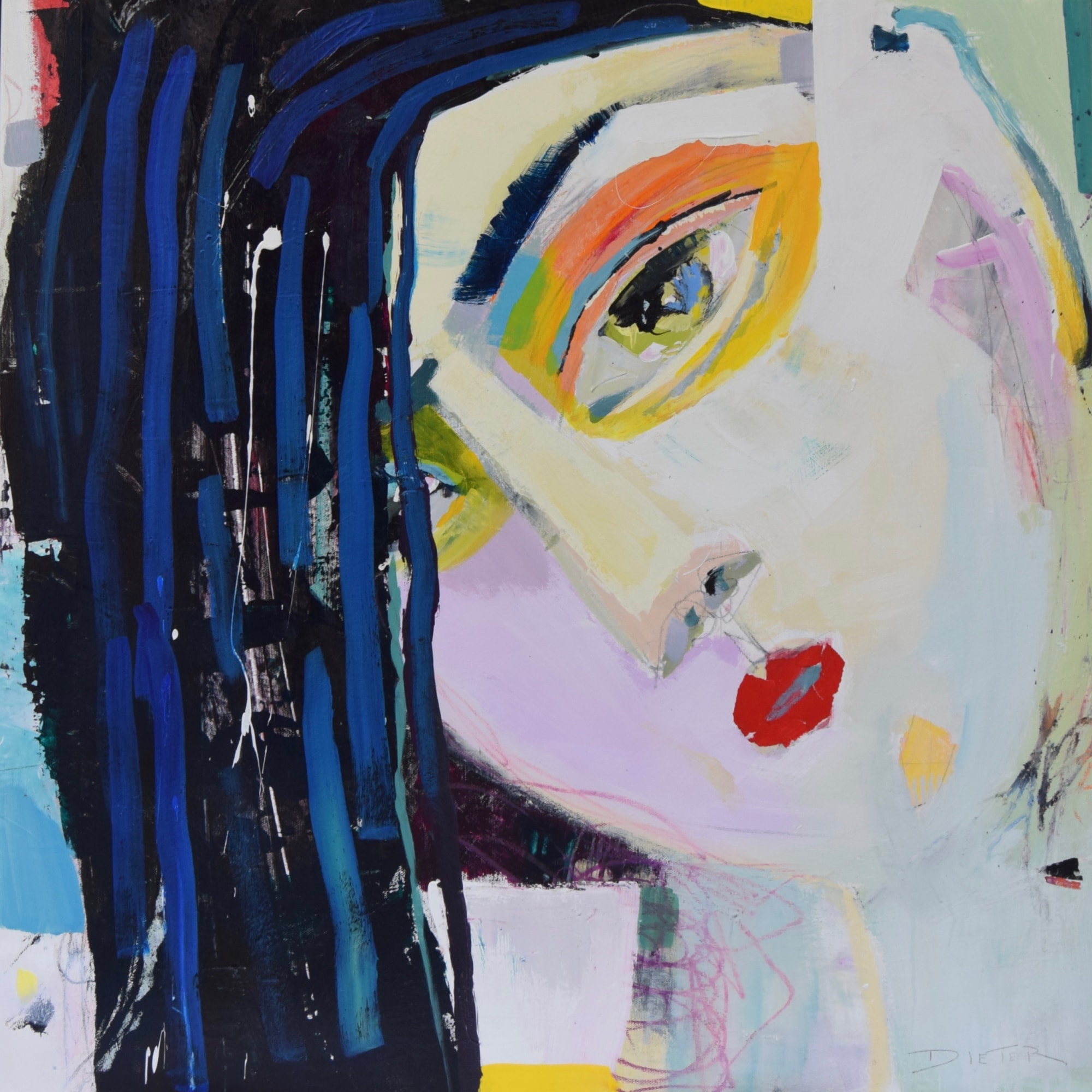 she is part of a series of portraits based on a self portrait of me years ago. the many versions I may see myself as we are all the same but different.