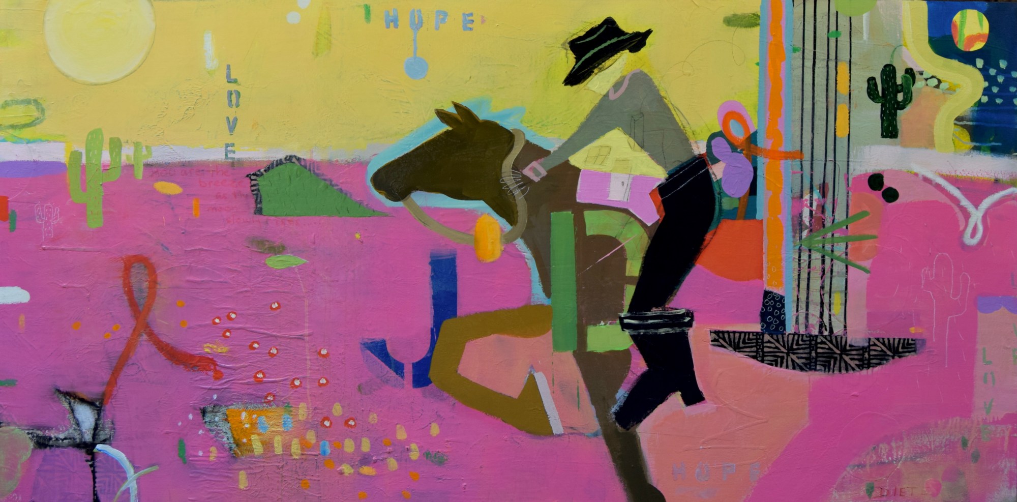 I almost always return to the horse and rider during any type of situation. I am so drawn to the connection between a horse and his rider, it is such a spiritual thing to me. This painting was painting during the shelter-in-place period of the covid-19 pandemic. I couldn't help but want to get out of dodge! so I "mounted my horse" and took off in the work. I hope it takes you for a ride too!