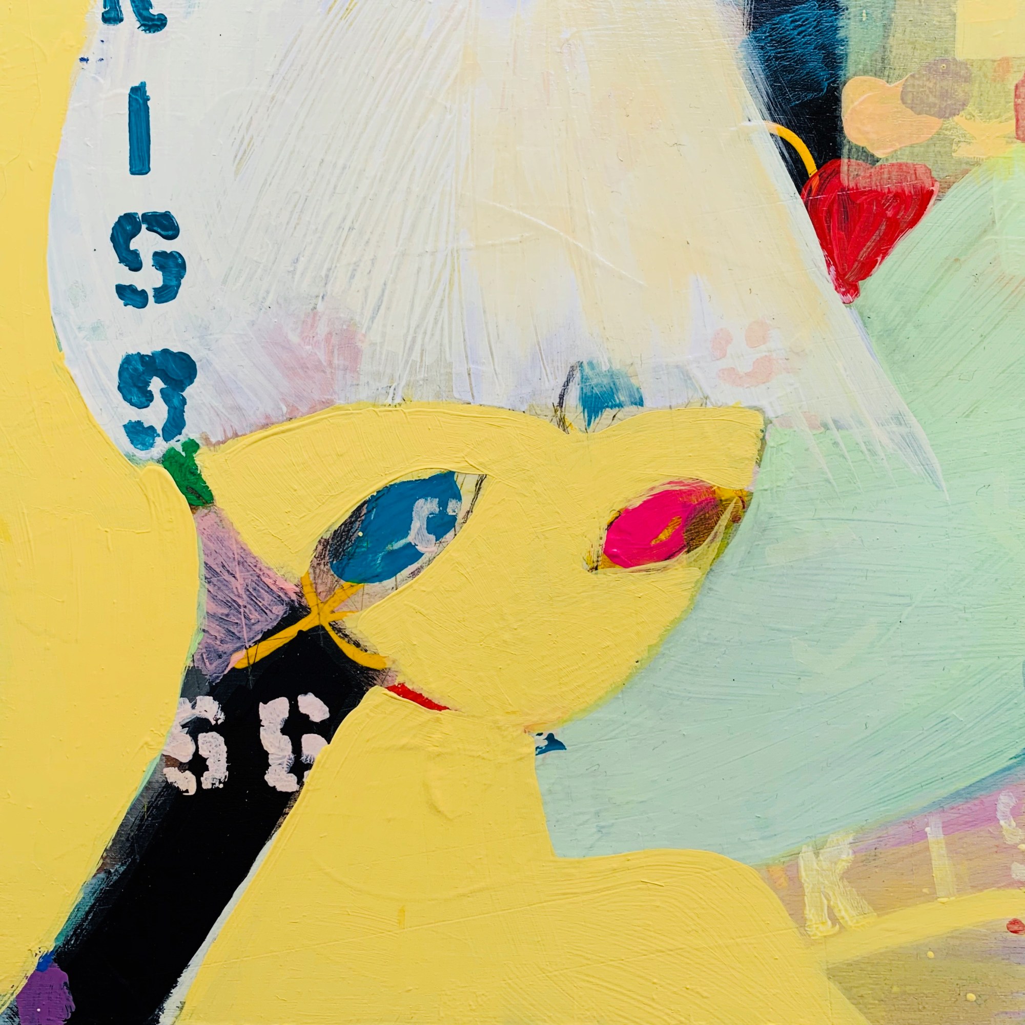 mixed media on panel which is not framed or cradled. A Fanciful piece, everyone needs a kiss now and again!