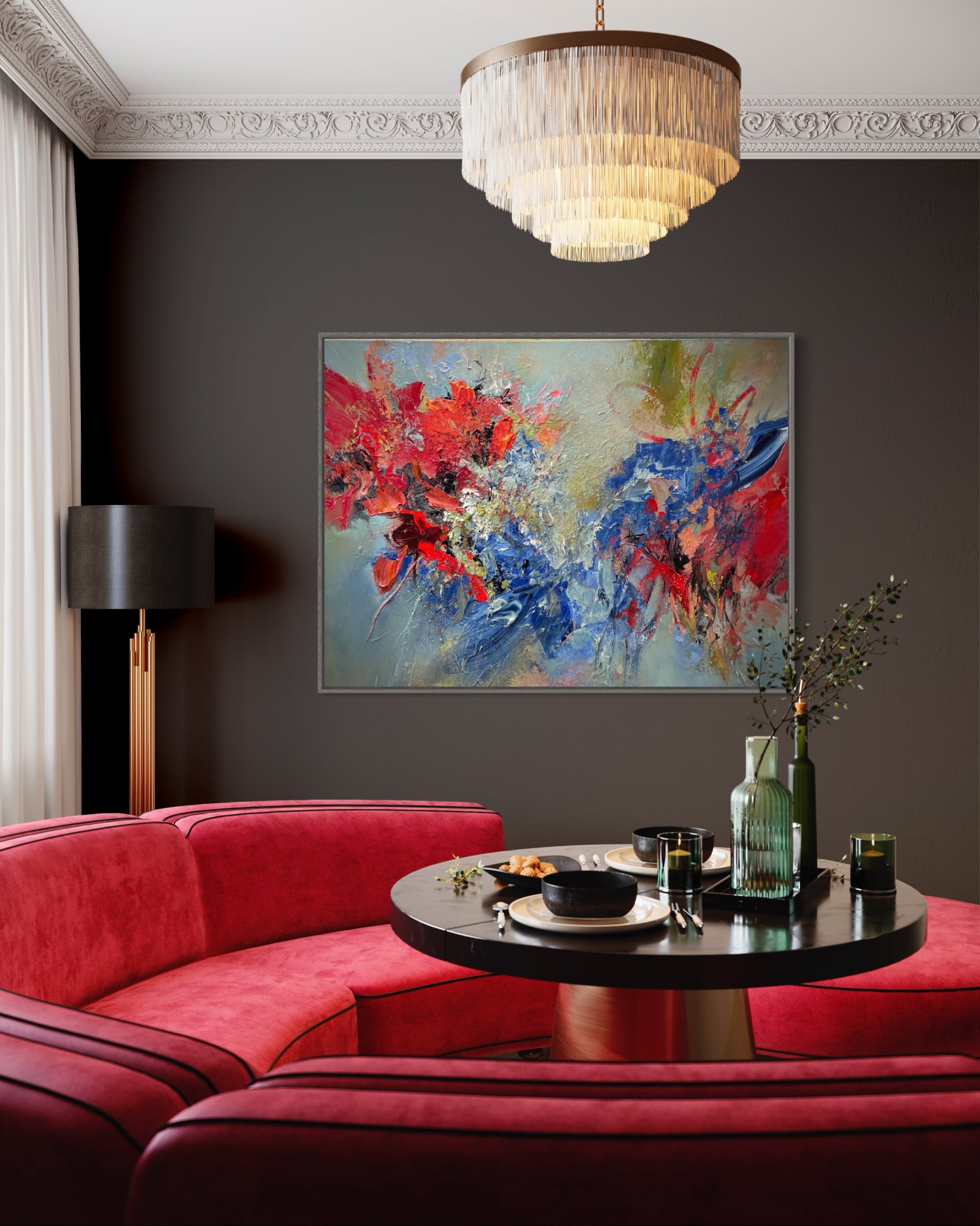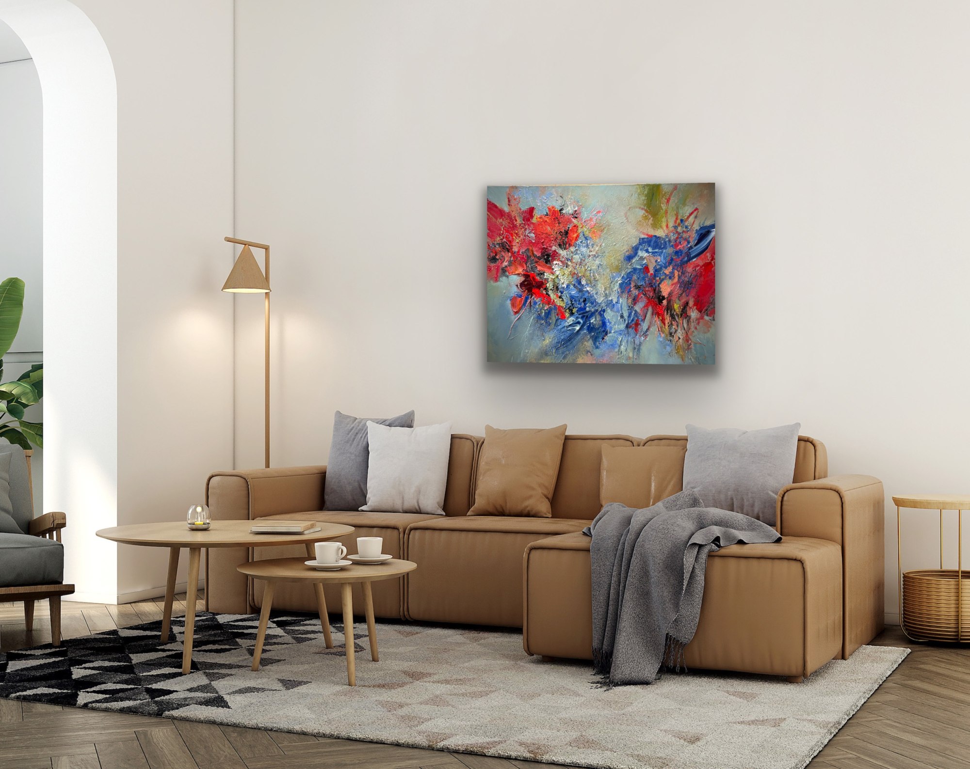 Mixed media with multiple layers of paint, impasto, glazing, seeing through to previous layers as well as paint very directly applied on the surface.