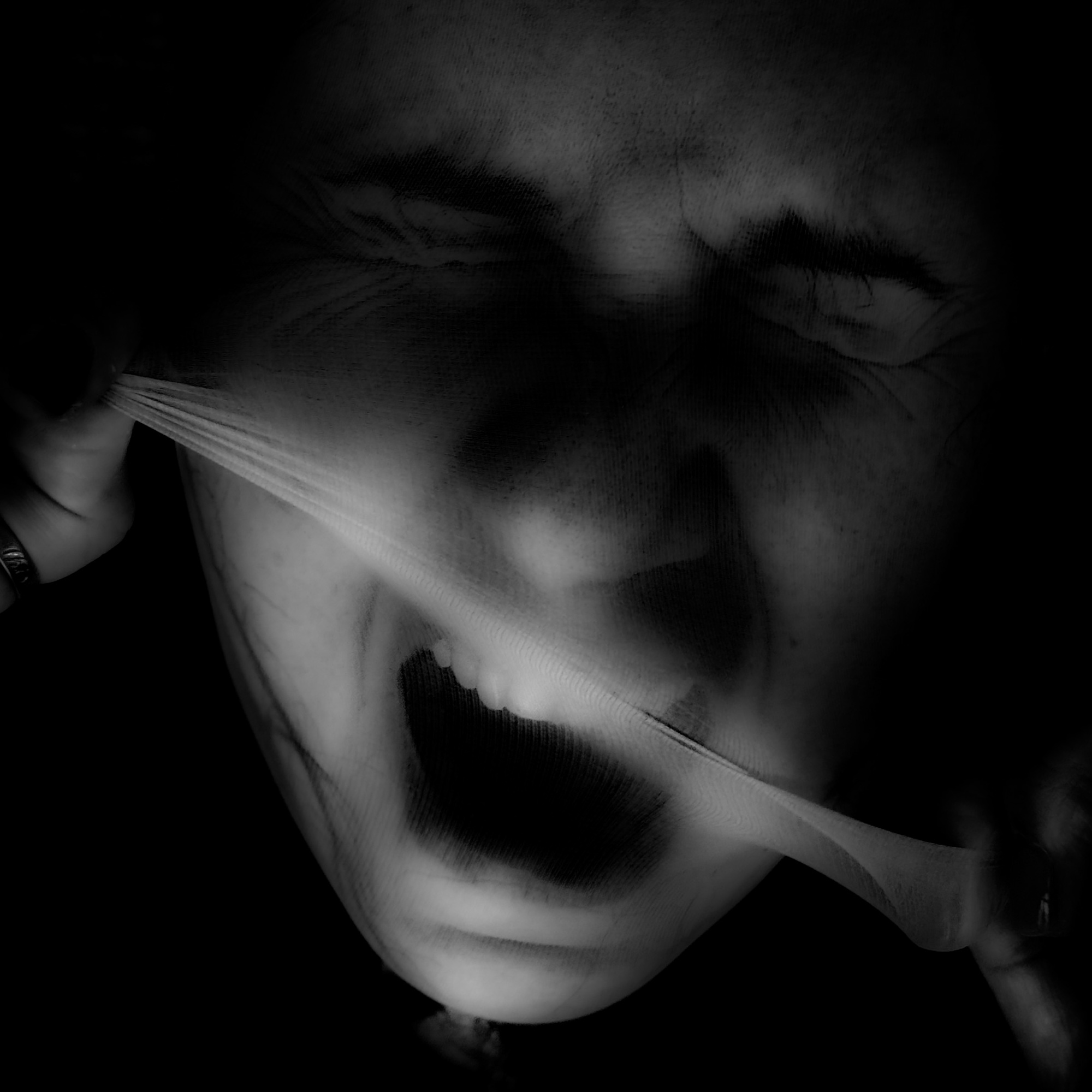 I always wondered what it would feel like to be trapped inside a stocking , compressed, seeing my face distorted, having to tear away the veil.