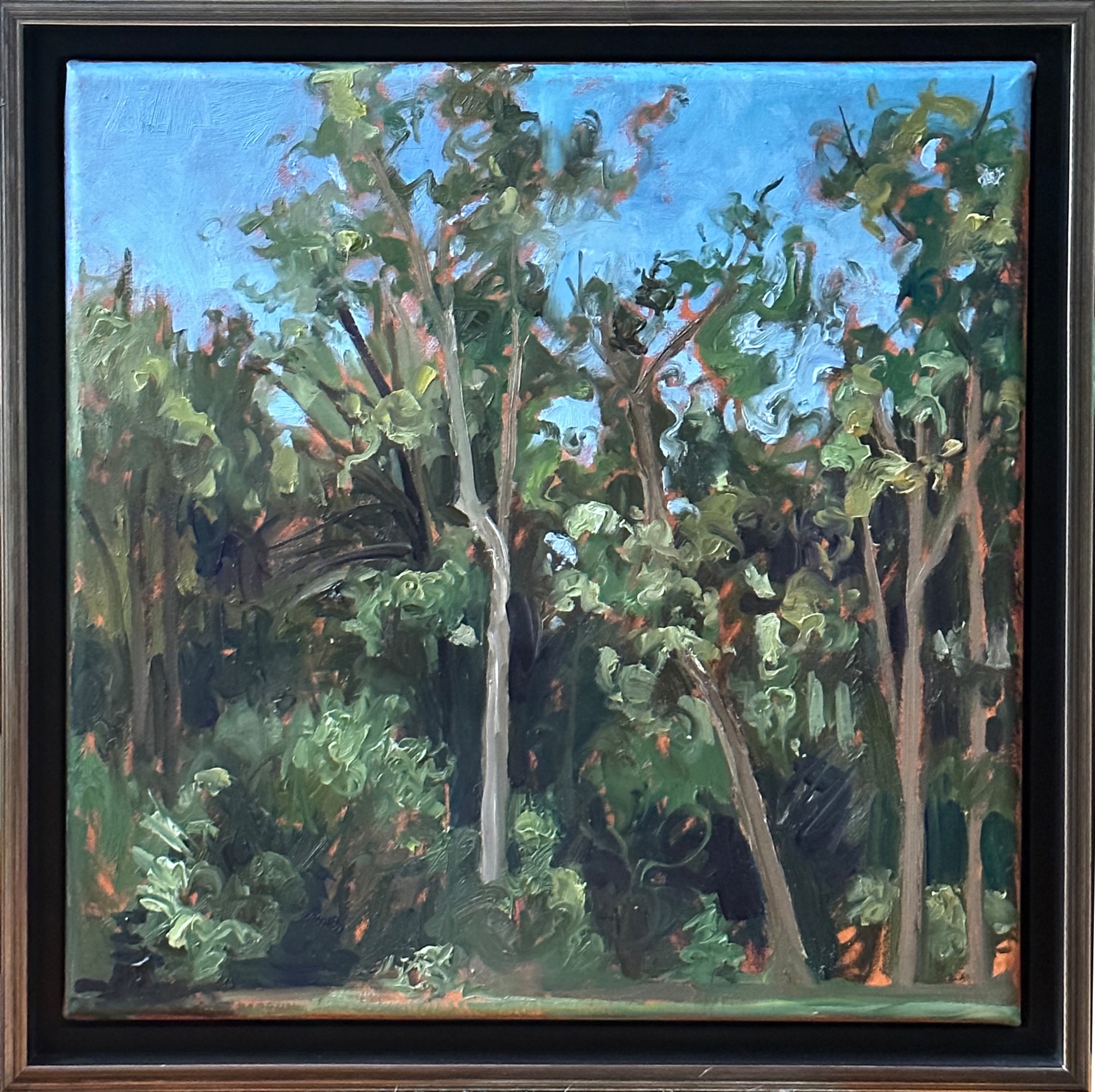 This morning I was looking for a secluded quiet place. I found myself in what I felt was the perfect location, behind Creekside Elementary School on a Sunday. This painting is to go with a series called Walls of Green; that time of year when foliage is dense and the sun is mid-sky.