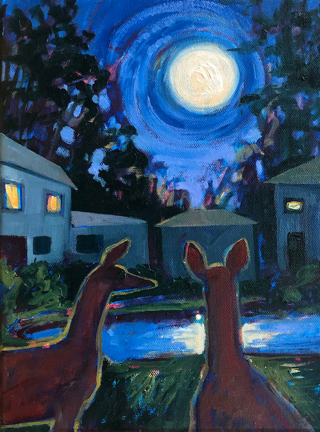 Painting outside from life. on repurposed wood + canvas, hand-pulled prints, art gift books and cards are available at her three locations.