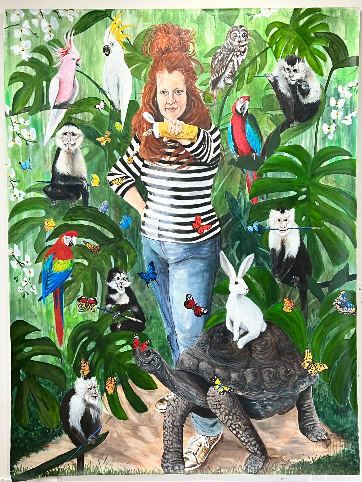 This Artwork celebrates how make-believe acts as a catalyst for creativity. This painting has no frame to exist without constraint, it has no boundaries - nothing to box it in. It’s an Artwork of free spirit, unencumbered. Without it’s frame the painting feels more tactile and approachable. The effect is intended to connect the viewer more intimately to the activity happening within the painting, to entice a closer look and to let the mind wander. To reopen the box and let imaginations run free….. to ‘let the Butterflies loose.’