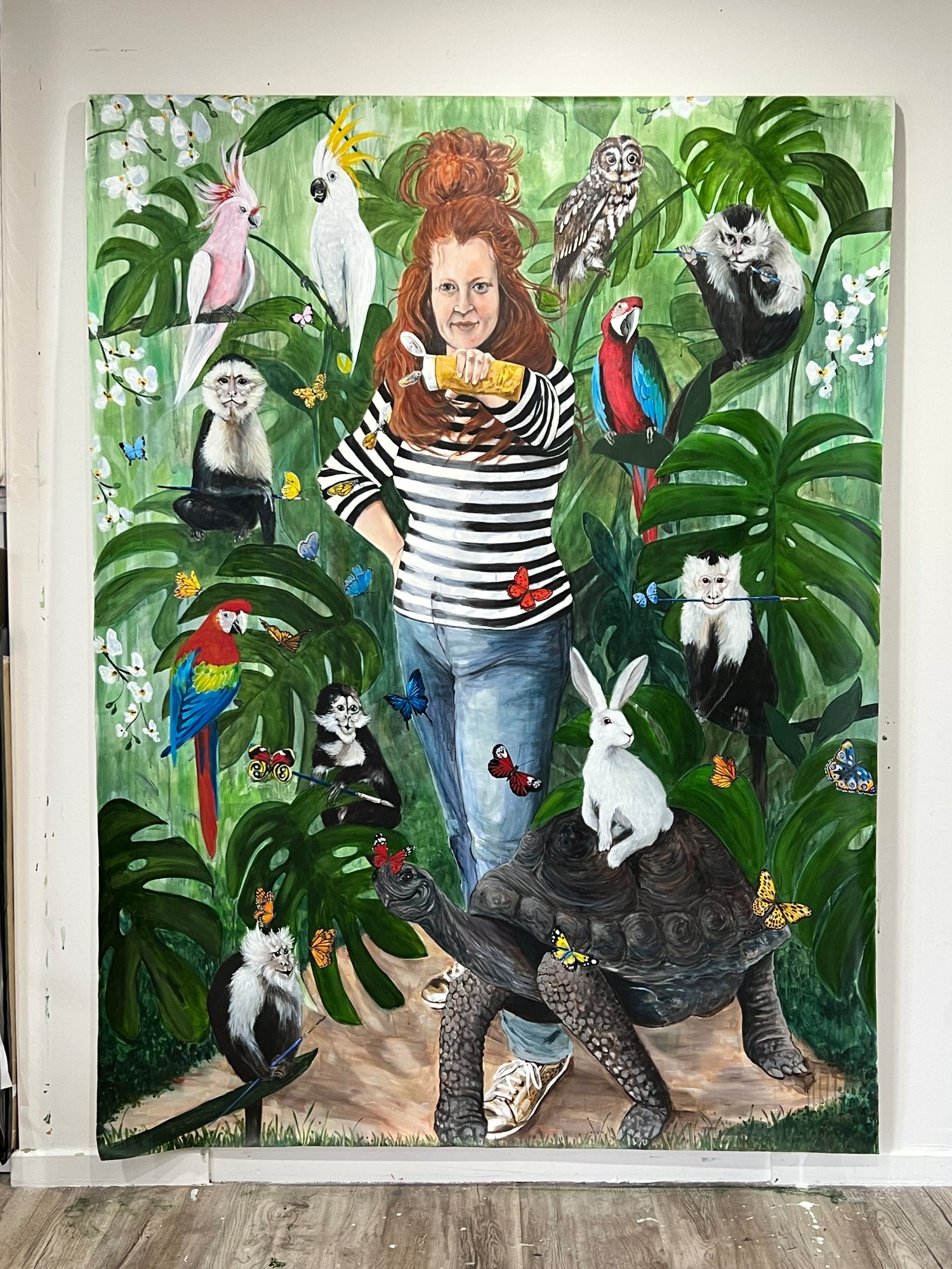 This Artwork celebrates how make-believe acts as a catalyst for creativity. This painting has no frame to exist without constraint, it has no boundaries - nothing to box it in. It’s an Artwork of free spirit, unencumbered. Without it’s frame the painting feels more tactile and approachable. The effect is intended to connect the viewer more intimately to the activity happening within the painting, to entice a closer look and to let the mind wander. To reopen the box and let imaginations run free….. to ‘let the Butterflies loose.’