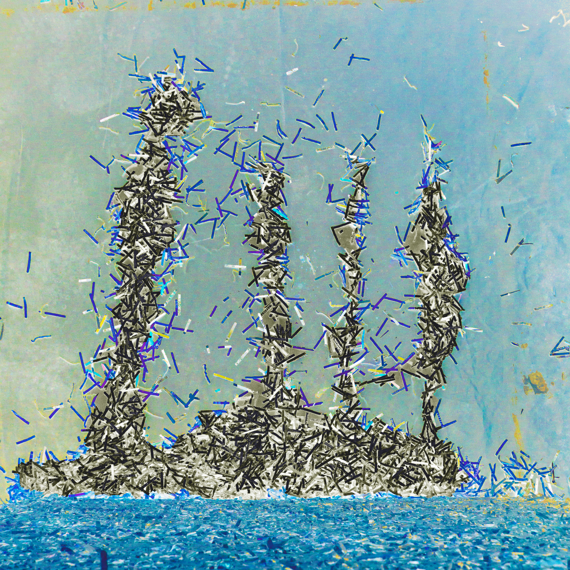 Digitally re-mastered shredded paper and plastic on canvas