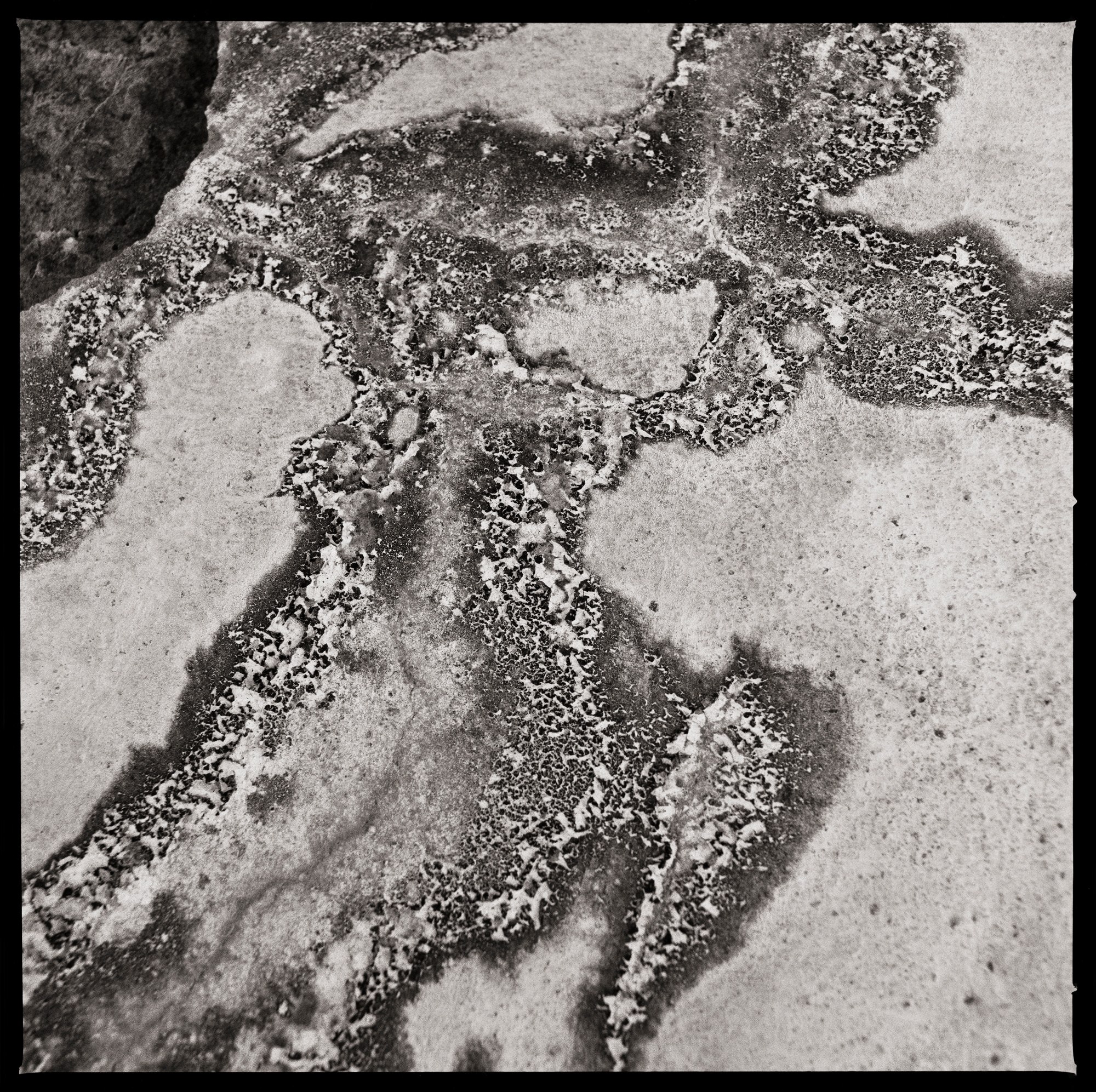 The Prisoner That Remians by Eric T. Kunsman  Image: ID: A black and white image shows a moss covered rock.  The moss vaguely has a human outline.