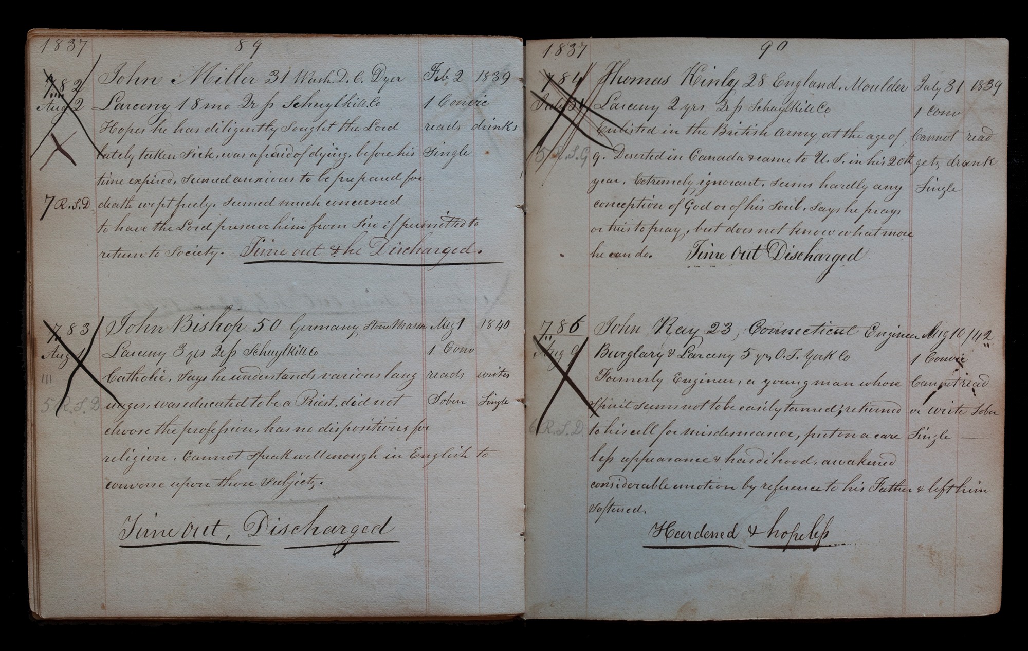 Warden's Logbook 1837, Page 89-90 by Eric T. Kunsman  Image: ID: A black and white image shows an open log book with cursive writing.