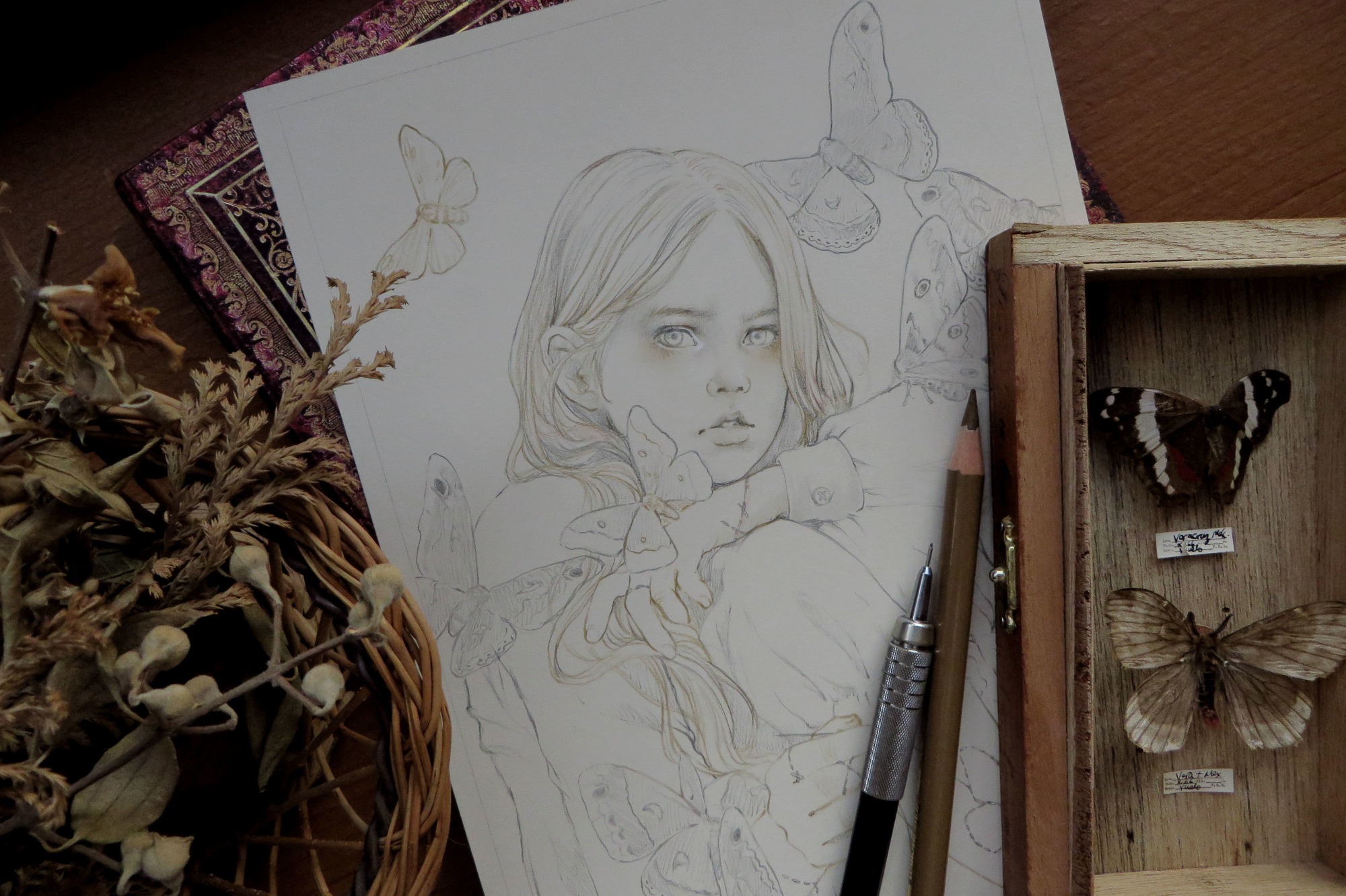 - mixed media, watercolor, gouache, inks, markers, pastel color, graphite and colored pencils on cardboard