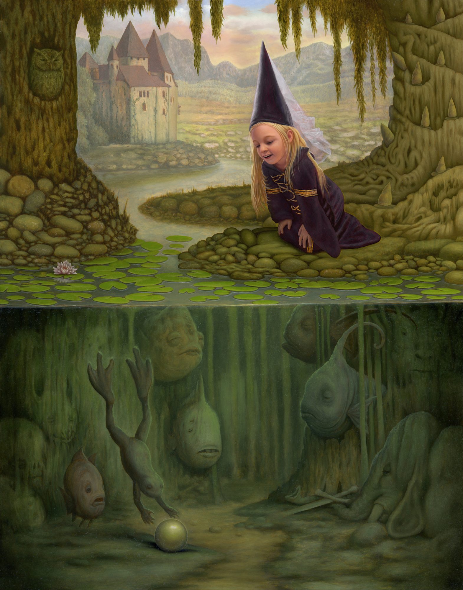 A young princess kneels at the edge of a still pond. Her world above is full of light, innocence, and wonder. But just beneath the surface, another world breathes - strange, ancient, and watching.