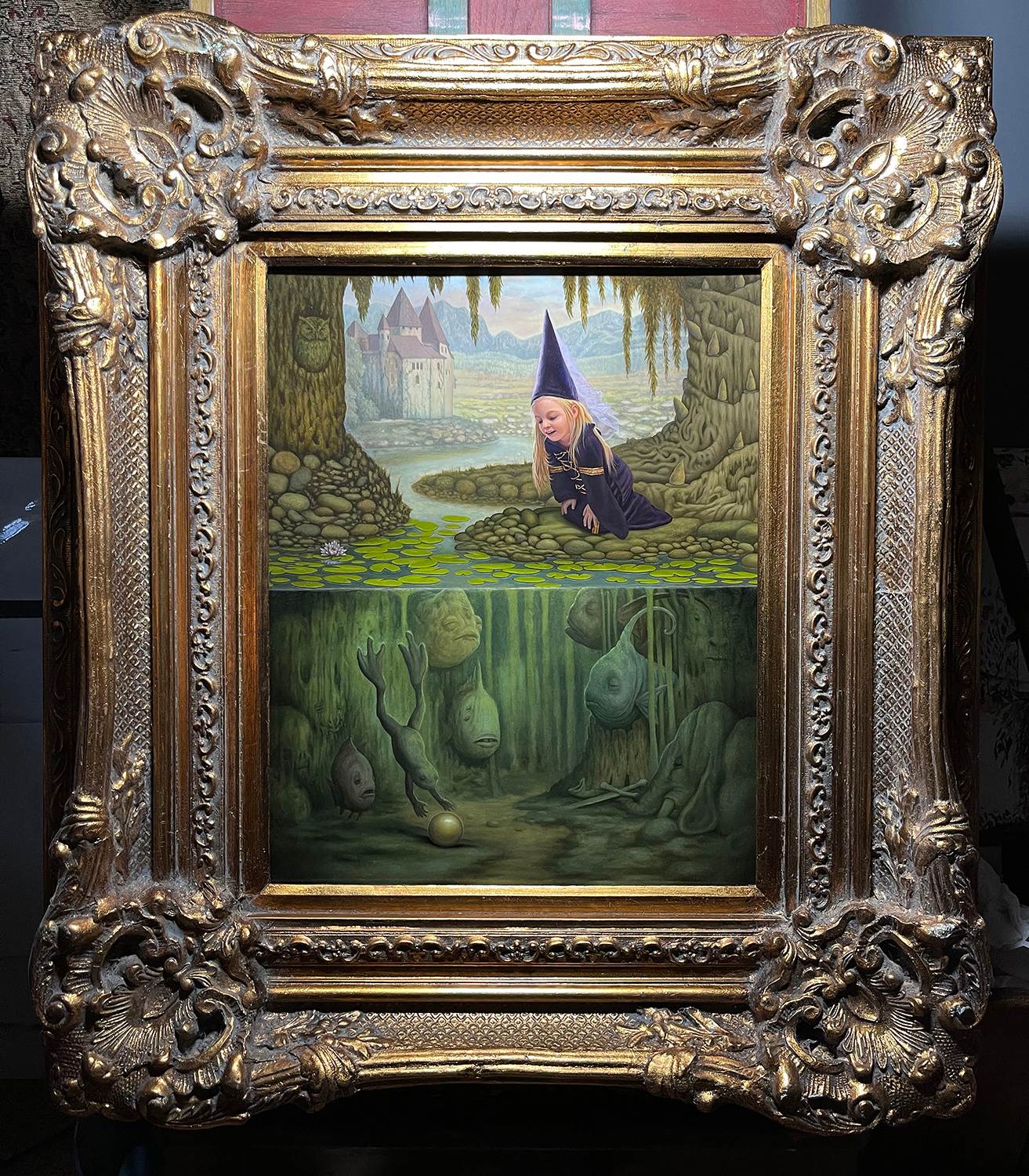 This piece draws from The Princess and the Frog - not as a literal retelling, but as a symbolic bridge. The golden ball she’s dropped isn’t just a toy. It’s the soul - plunged into the depths, waiting to be reunited.