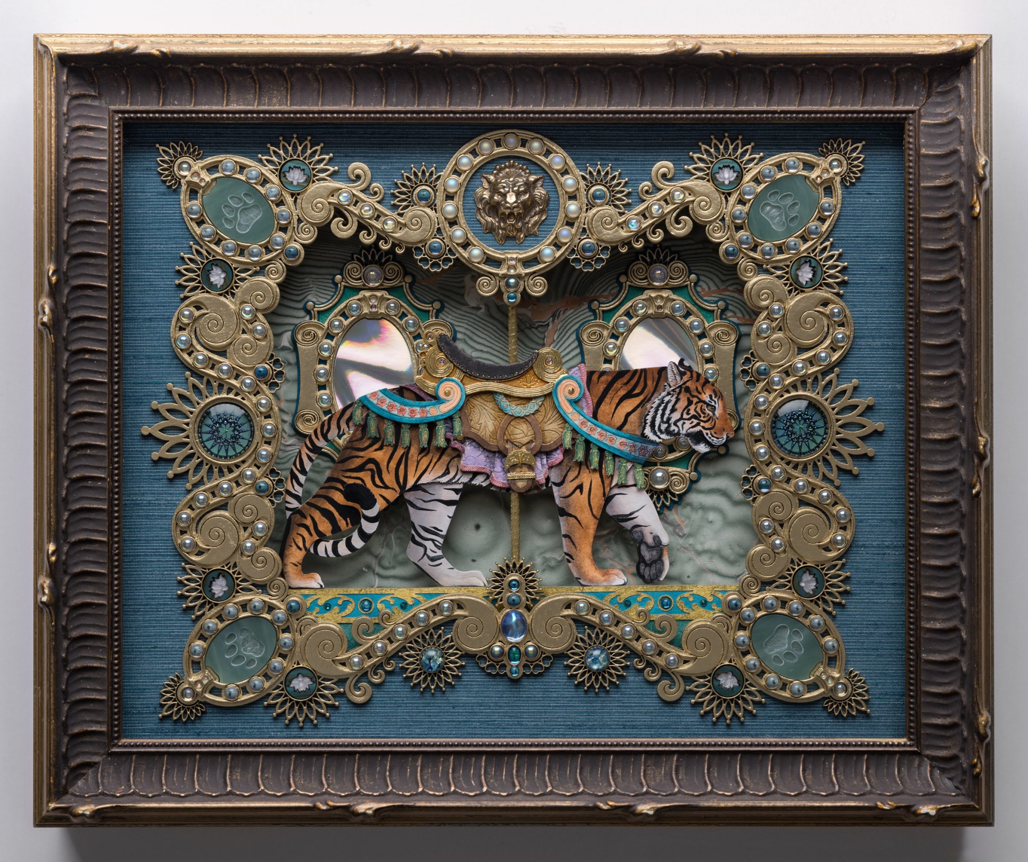 - Cut Paper, Watercolor, Gouache, Acrylic, Brass, Vintage Glass Rhinestones, Swarovski Crystals, and 24K Gold Leaf