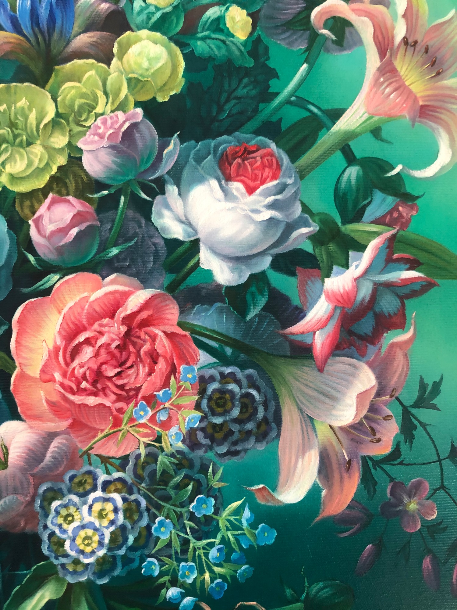This quality oil painting is made on gallery wrapped canvas, unframed as the edges are overpainted. You can prepare it for hanging with the hook on the back.