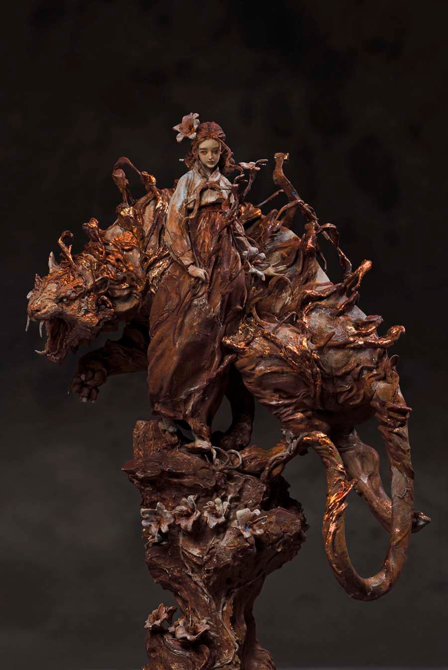 Inspired by ancient myths of the Korean Peninsula, I depicts the beasts who once prayed to be transformed into humans by the gods but were left wandering. The tiger are portrayed as primal, wild forces of nature, The transformation of animals into humans is represented by the emergence of softer, more fluid energy, suggesting the development of a more nuanced, complex humanity.With a mythological and classical shell I attempts to portray the fundamental struggle within the human psyche to reconcile opposing forces - the wild and the civilized, the instinctual and the rational.