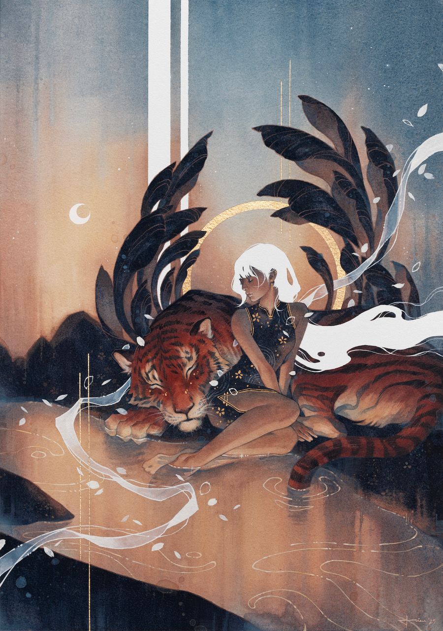- Watercolour, gouache, pencil, ink and gold leaf on paper