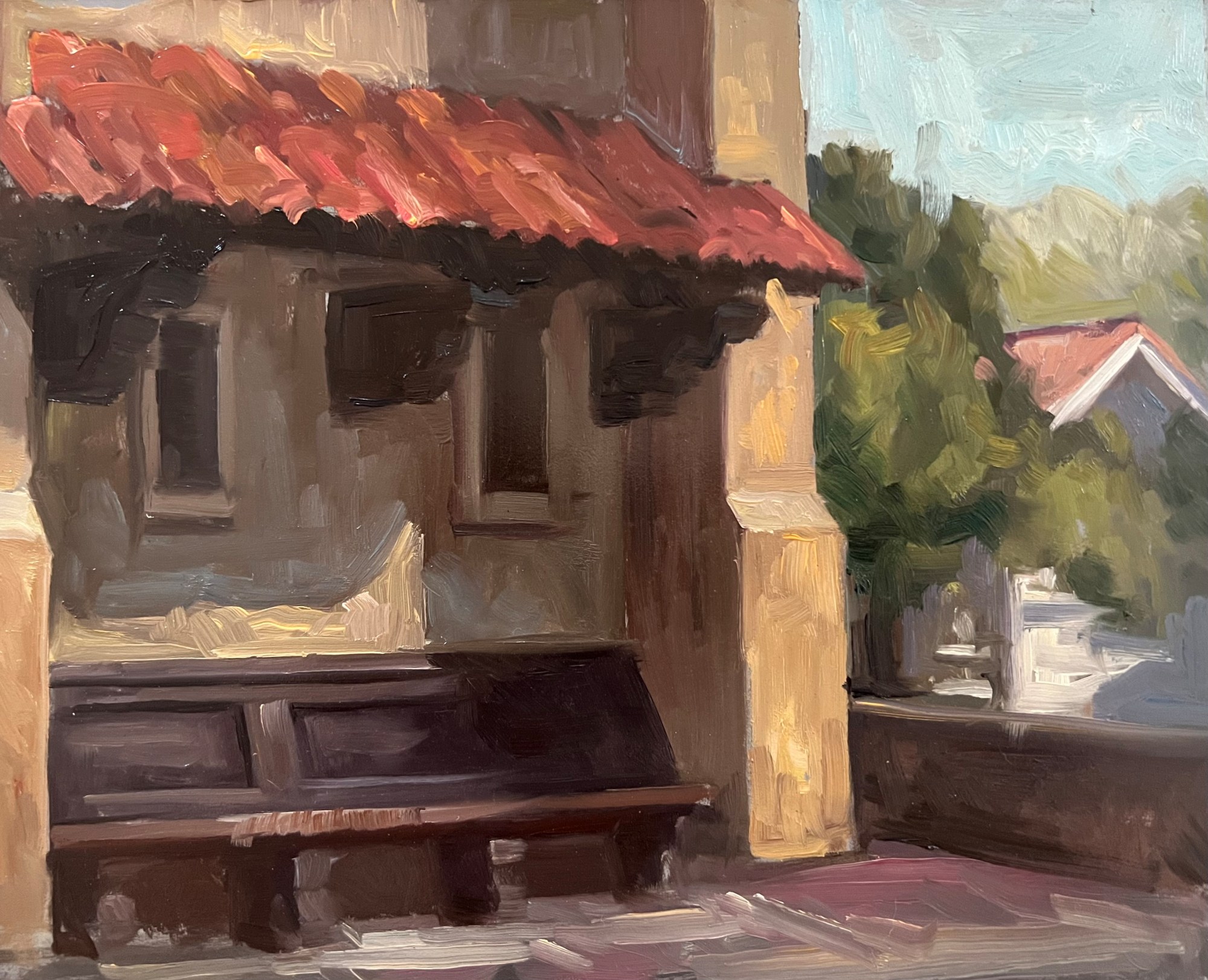 A small artistic painting study of the bell tower at Mills College in Oakland, CA. This building, now known as El Campanil, was designed by famous architect Julia Morgan in the early 1900's. This was painted on location as a Plein air study.