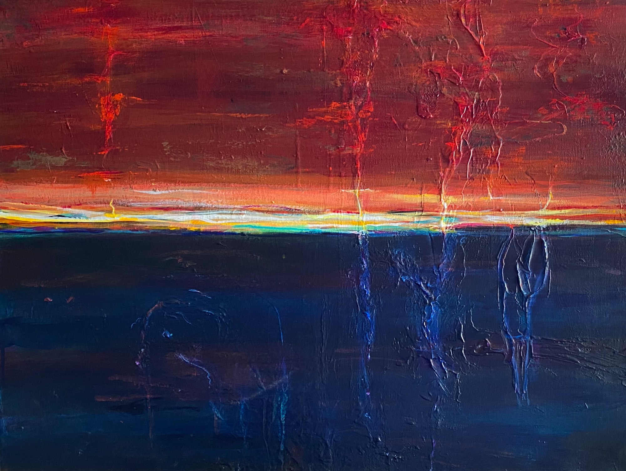 Inspired by a photo of the sunrise at Cruden Bay, Scotland. Local lore says if you see a flash of green light there, you will never by unlucky in love.