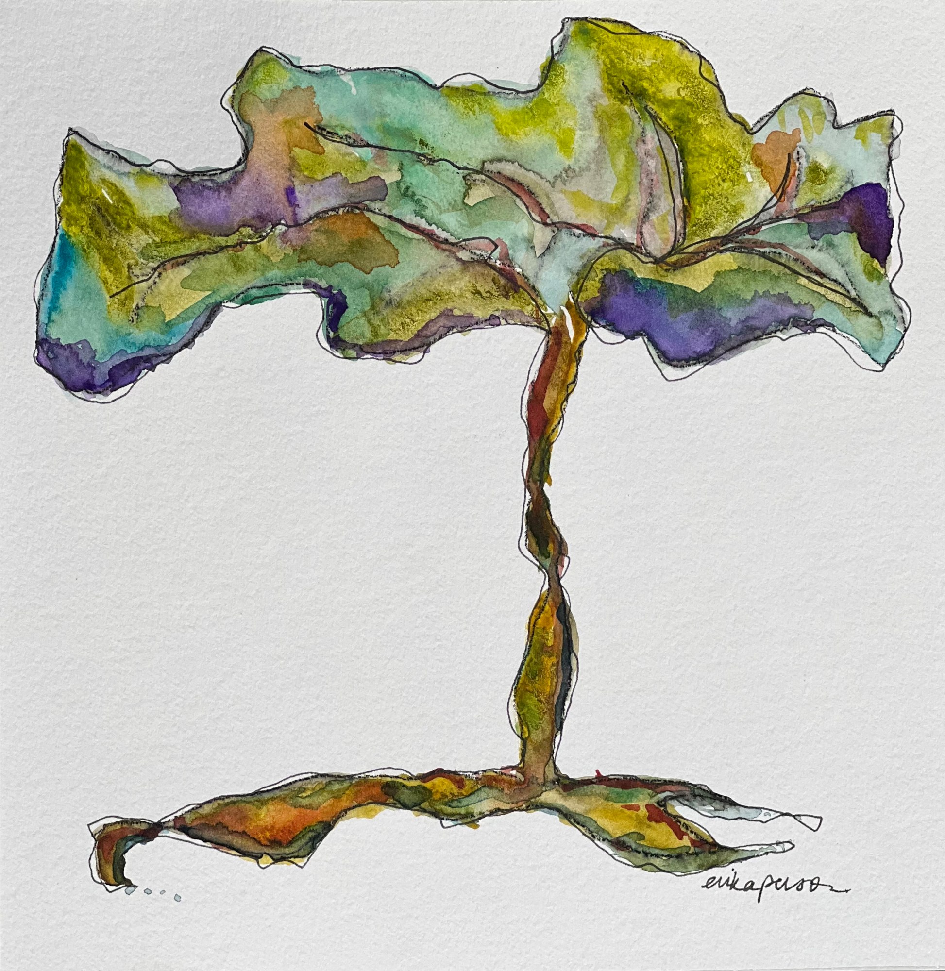 This is part of my Little Trees series. Watercolor and stabilo pencil on cold press watercolor paper.