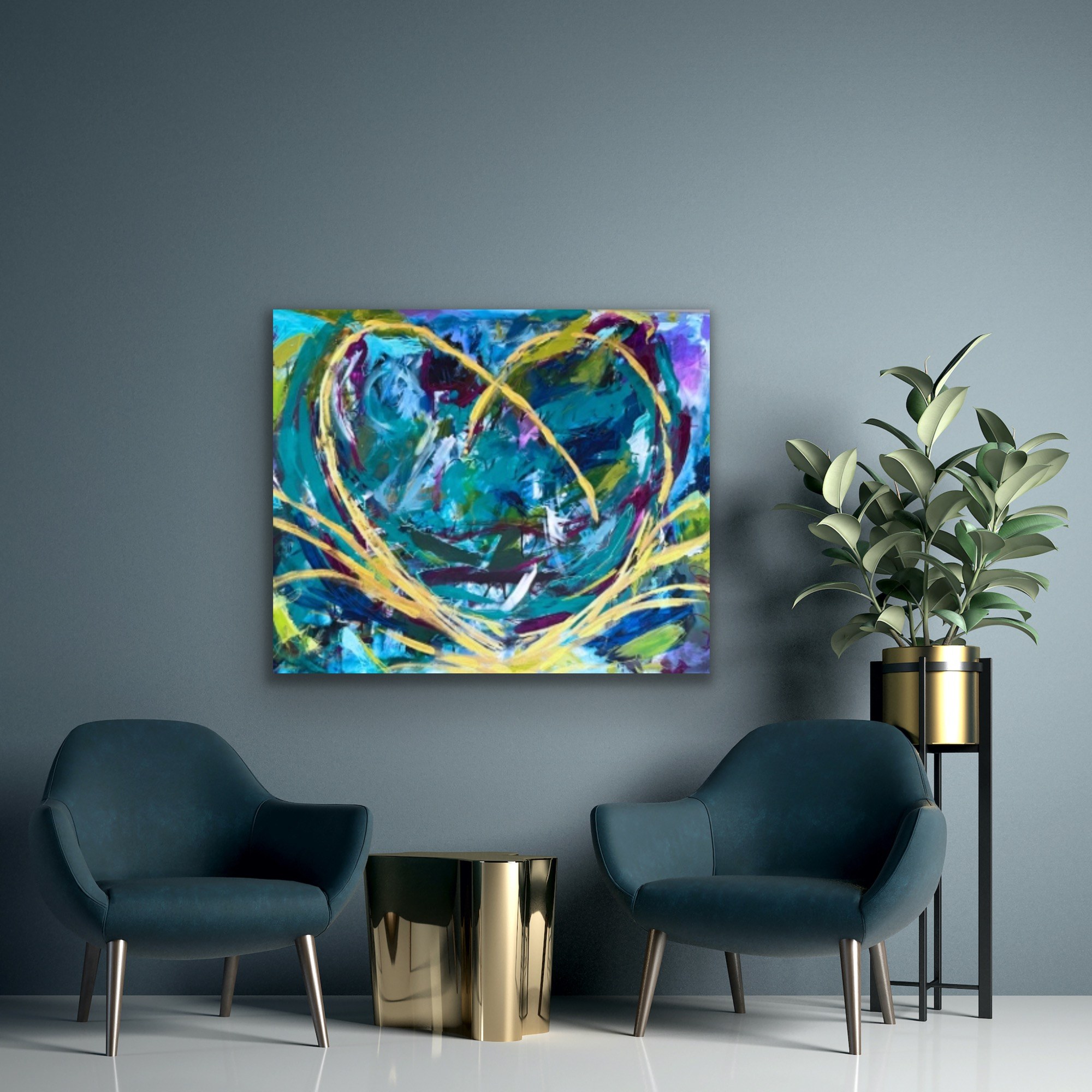 This piece, like its predecessor "Becoming (No. 1)" is inspired by the quote, "Let me fall if I must. The woman I am becoming will catch me." from Ba'al Shem Tov. This piece is a physical representation of self-love. It was mostly created with acrylic paint, with acrylic ink, Posca paint markers, and oil pastels. The larger canvas allowed for larger and broader brushstrokes and was painted entirely in a spirit of play and exploration -- allowing for mistakes (falling) followed by responses (catching). May we all hold such love and wonder in our hearts, that we may feel safe and learn to trust ourselves.