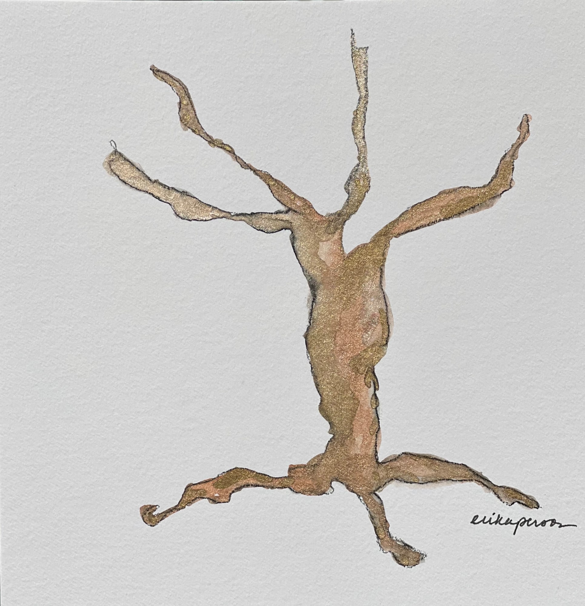 This is part of my Little Trees series. Watercolor (translucent and metallic) and stabilo pencil on cold press paper, signed in ink.