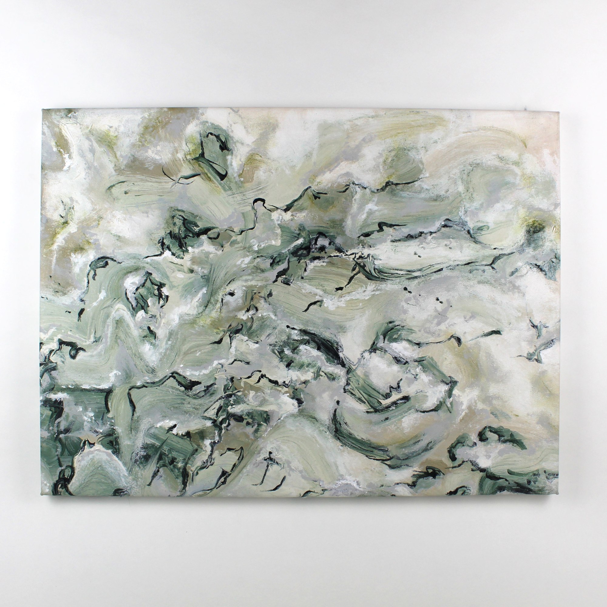 A mixed media painting created to resemble the calm and chaos of the sea. paint, pastel on canvas