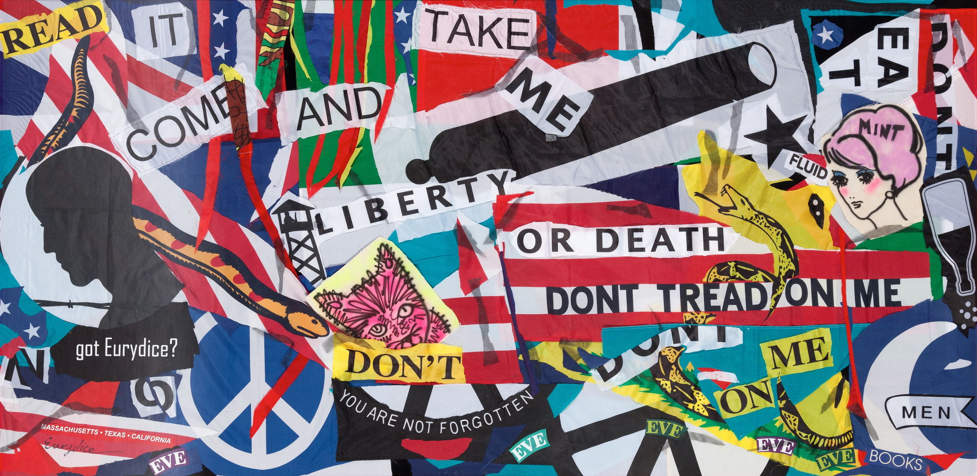 American Flag collage framed in red laquer