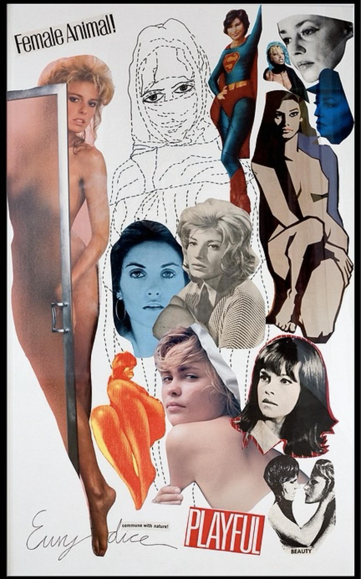 Eurydice: Female Animal. 51”x86”, hand-stitched collage of original film posters & photos on museum quality paper, framed in museum white.