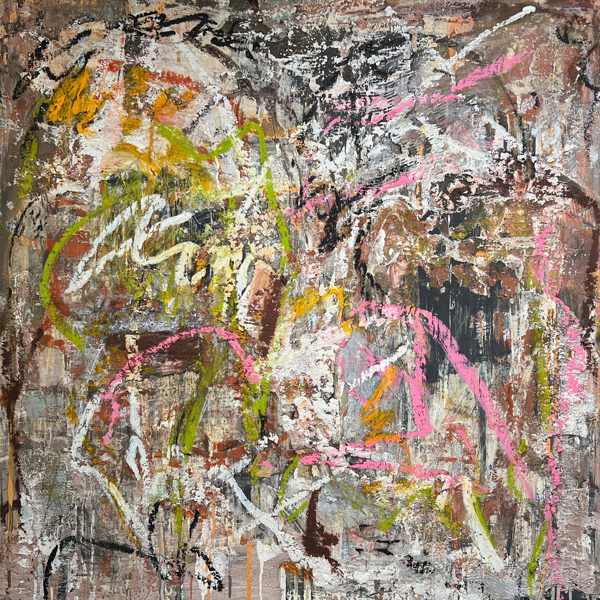 Venetian plaster, lime wash and A & F pigment sticks on wood panel