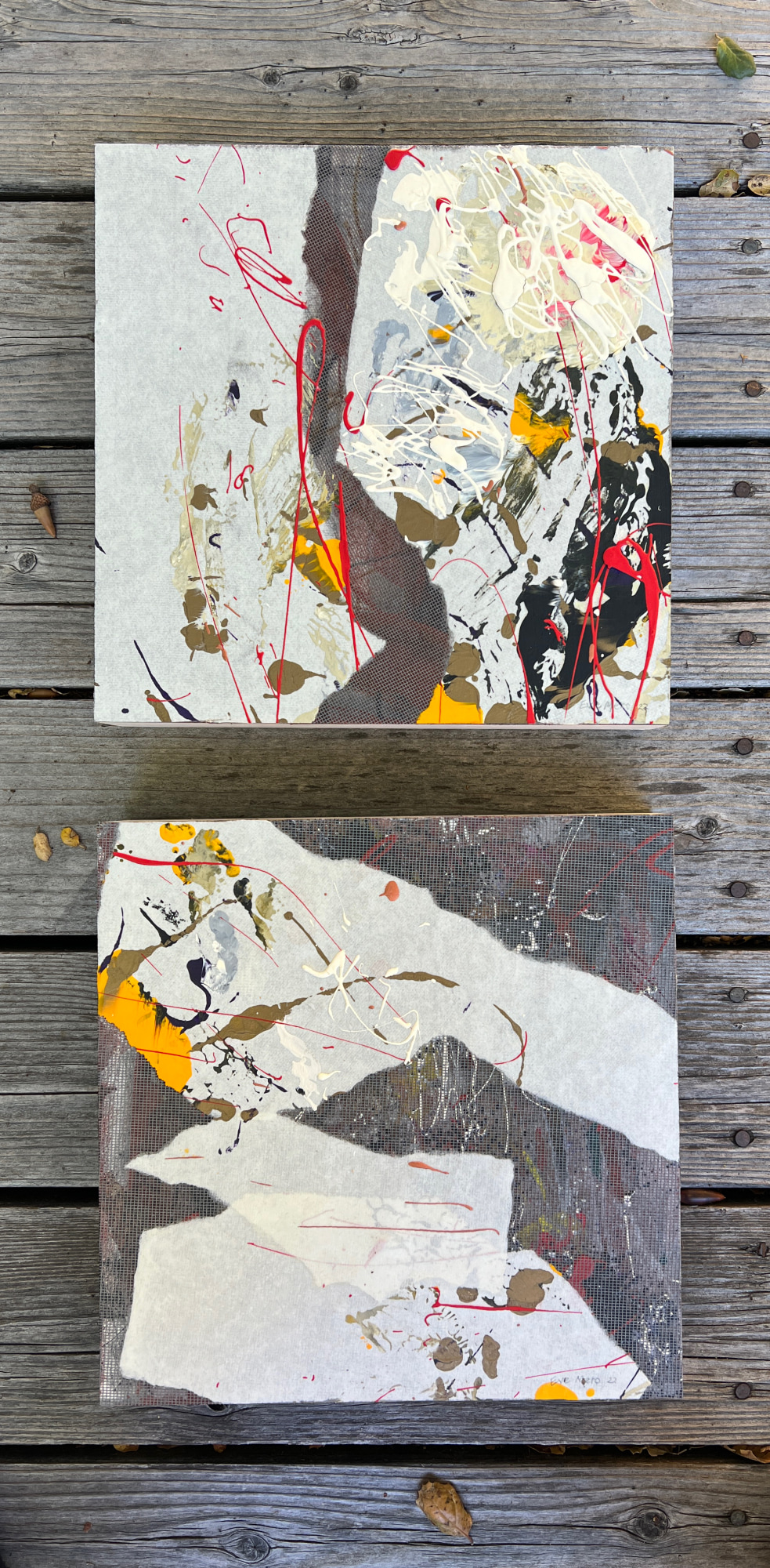 Flashe emulsion, mulberry paper, and screen on wood panel