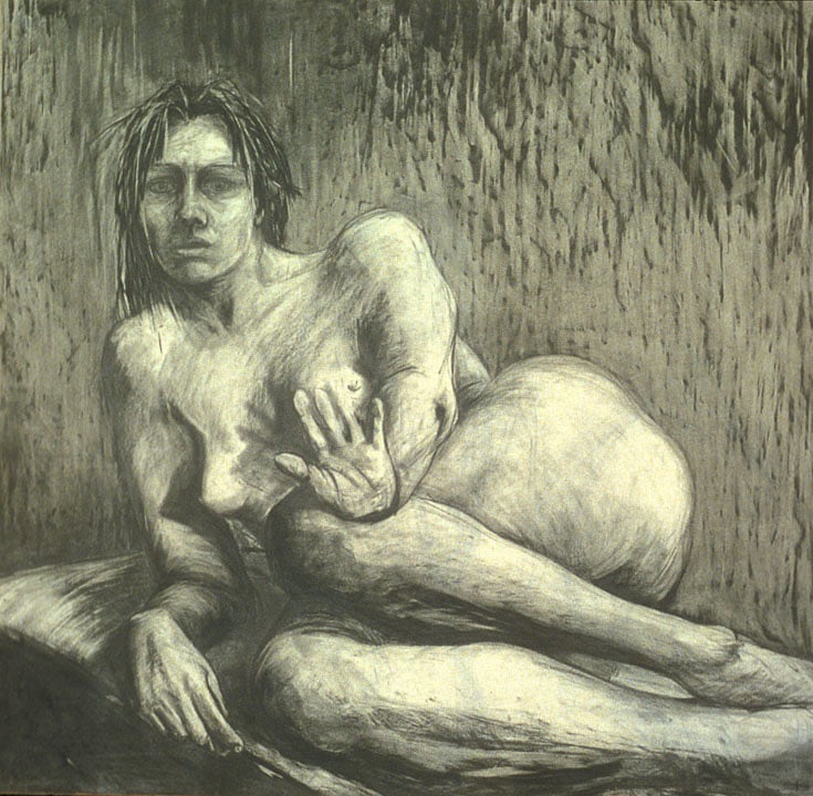graphite sticks, ebony pencil, acrylic gesso on paper
