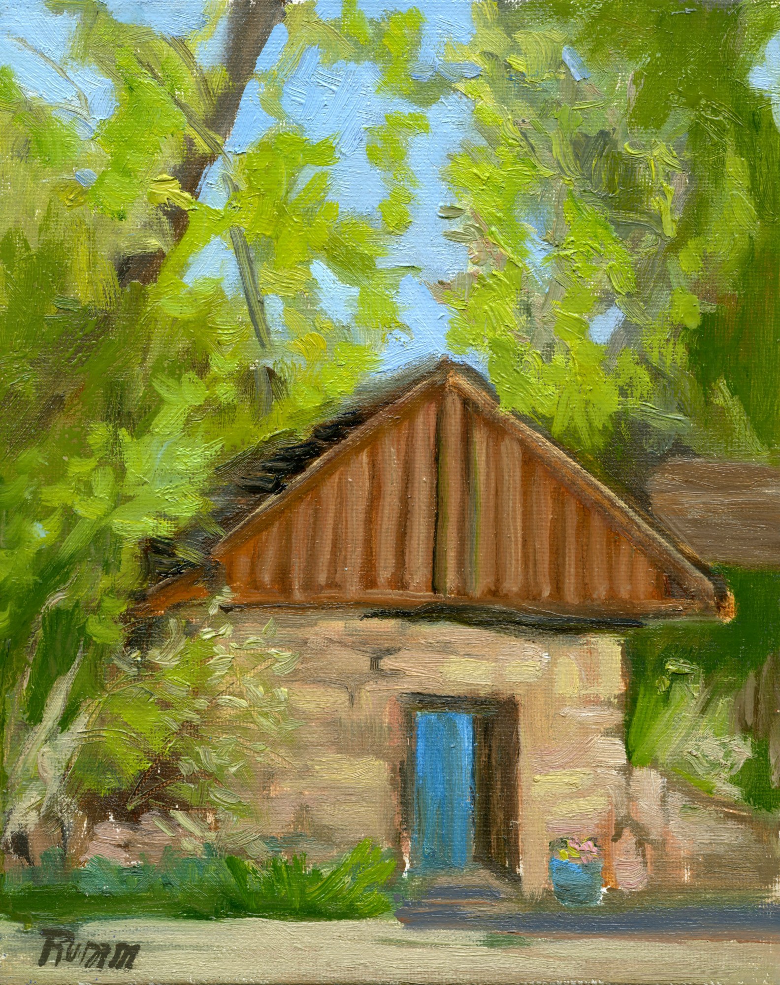 I'm not one to paint architecture often; I pretty much stick to nature, but this little turquoise door on the stone building captured my interest!