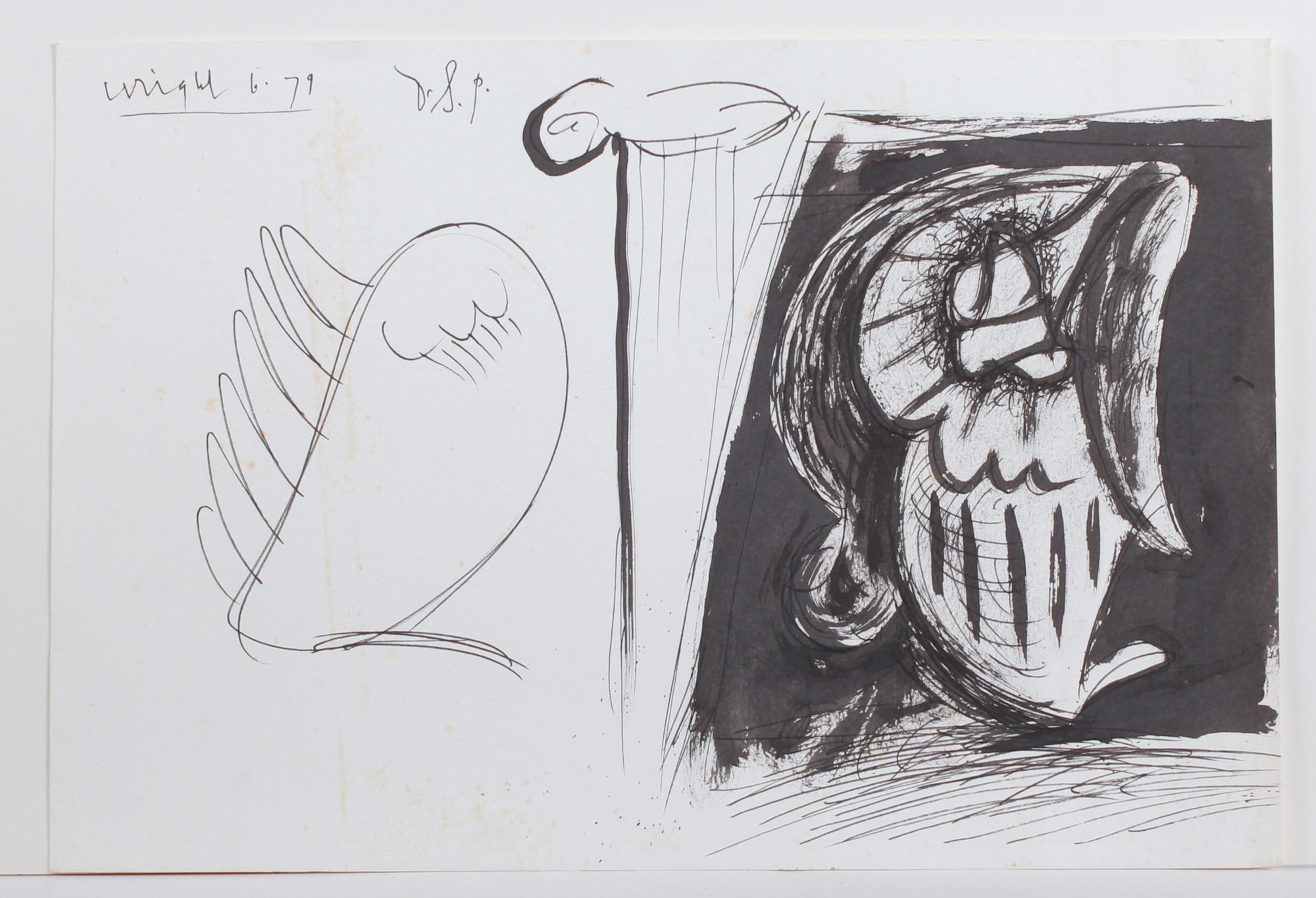 The work is an abstract self portrait made by the artist David Wright as a way of expression.