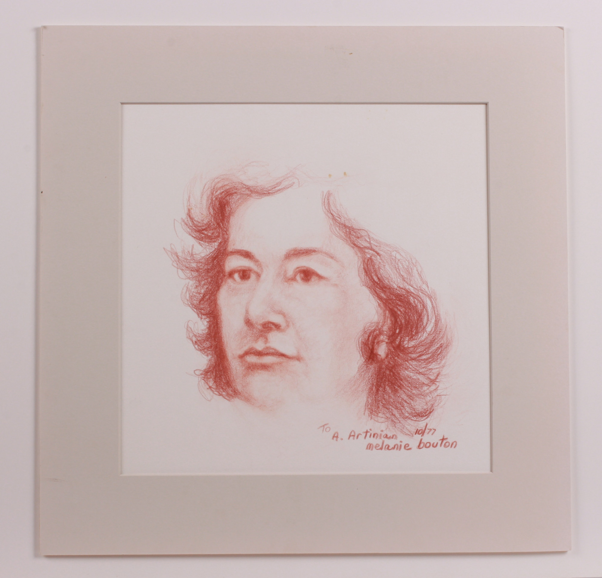 - Signature: Front bottom right corner "To A. Artinian 10/77 Melanie Bouton"